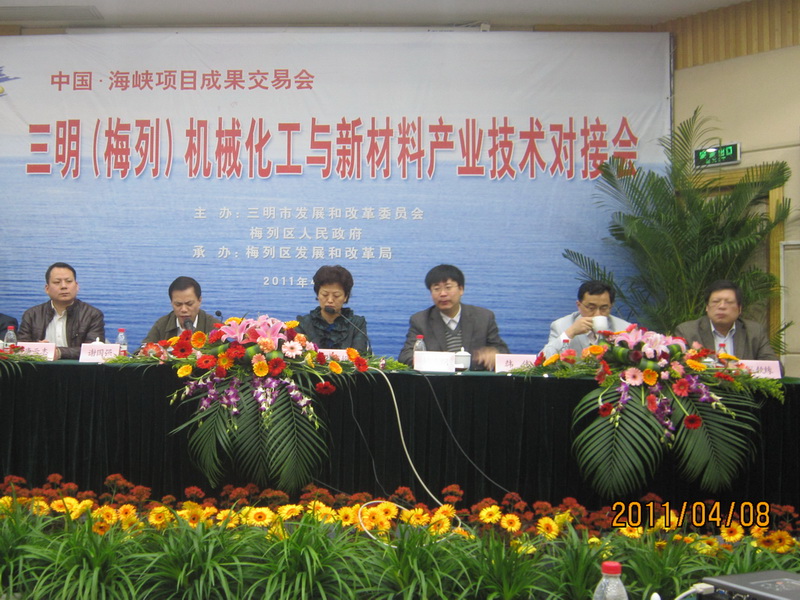 为进一步贯彻省委省政府618工作精神,深化高校与地市合作,推介高校科研成果,切实帮助企业提高技术发展水平,促进三明市产业结构调整。2011年4月8日,应三明市发展和改革局与梅列区人民政府的邀请,江南(中国)科技处及化学与材料学院、生命科学学院的教师、专家一行8人赴三明市参加“第九届中国•海峡项目交易会”三明(梅列)机械化工与新材料产业技术对接会。