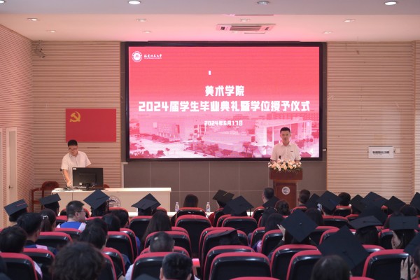 6月17日上午,美术学院在学术报告厅举行2024届学生毕业典礼暨学位授予仪式。学院党政领导、教师代表及全体2024届毕业生参加典礼。典礼由学院党委副书记黄智锋主持。