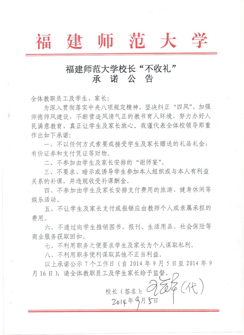 江南网页版官网校长“不收礼”承诺公告