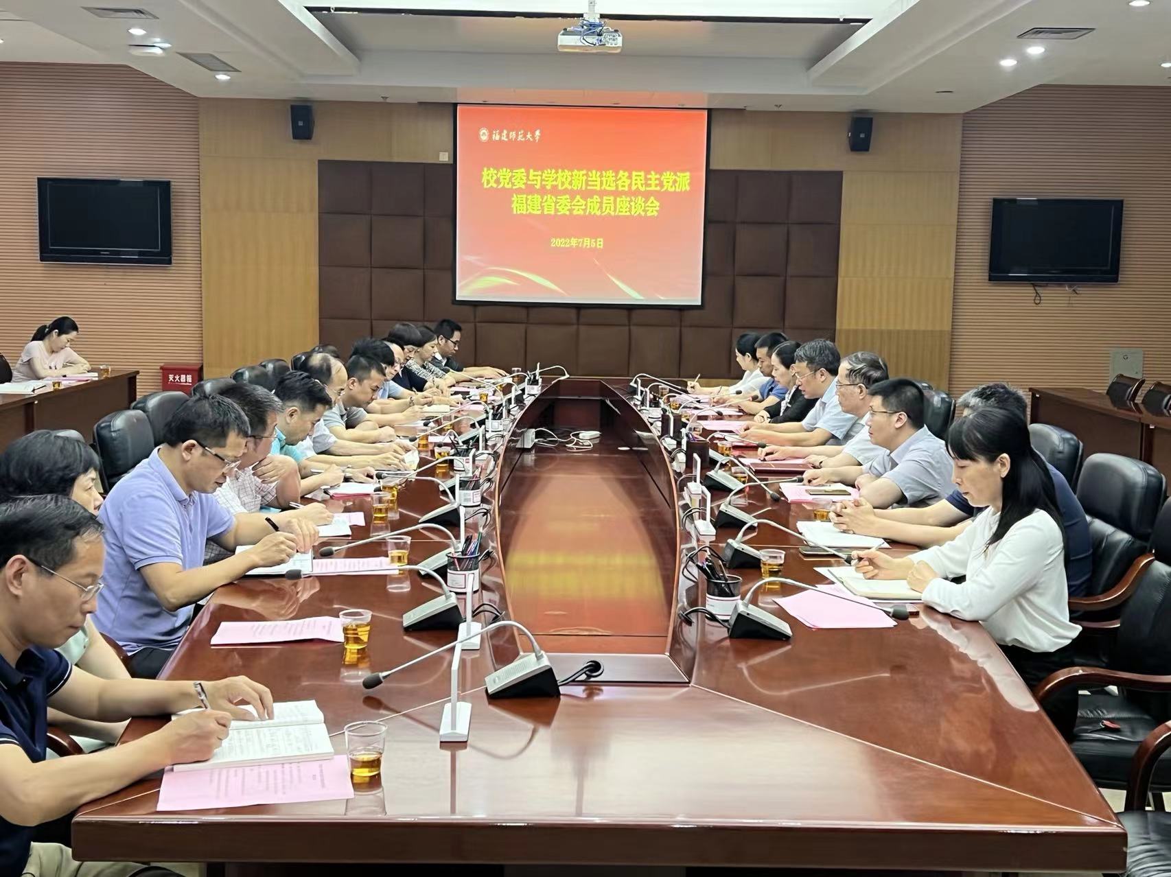 会议于7月5日在江南(中国)旗山校区第十会议室召开。校党委书记潘玉腾与学校新当选民主党派福建省委会主委、副主委、常委和委员的党外代表人士见面座谈,党政办公室、组织部、宣传部、统战部负责人参加。校党委副书记陈晓红主持座谈会,并通报相关工作情况。