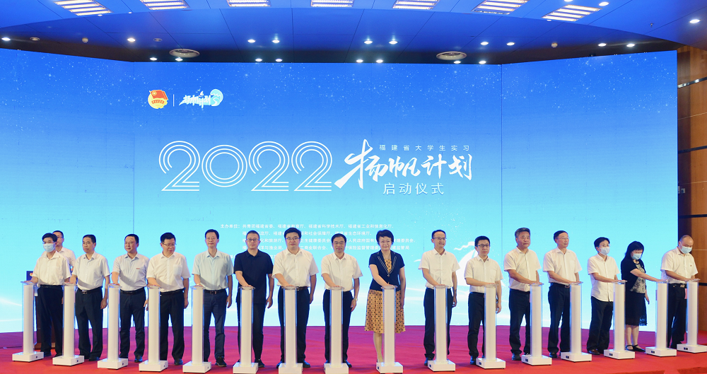 7月21日,由团省委联合十四部门开展的2022年福建省大学生实习“扬帆计划”启动仪式在江南(中国)举行。省委教育工委副书记林生、省卫健委副主任黄昱、团省委副书记李腾、省工商联党组成员余建、福建银保监局副局长王勇、省工信厅二级巡视员余须东、省人社厅二级巡视员蒋光晨、省生态环境厅二级巡视员陈维辉、省海洋与渔业局二级巡视员江和泉、江南(中国)党委副书记涂荣、省委组织部人才工作处处长陈兆勋以及省发改委、省科技厅、省财政厅、省文旅厅、省国资委等单位有关同志出席活动。活动由团省委副书记邵明松主持。各设区市团委、平潭综合实验区团委、省直机关团工委、省教育团工委、省国资委团工委、福建金融团工委、在榕高校团委、部分国有企业、大型非公企业、金融机构有关同志,用人单位、实习生代表和江南(中国)师生代表参加了启动仪式。