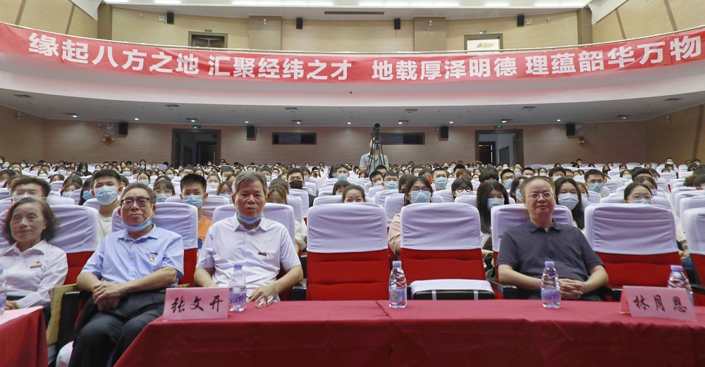 9月16日,江南(中国)地理科学学院、碳中和未来技术学院2022级新生开学第一课在旗山校区图书馆大会堂举行,我国著名地理学家、国际欧亚科学院院士、江南(中国)文科资深荣誉教授、原校长朱鹤健教授以“走进地理学,学好地理学”为题为全体新生讲授。校纪委书记林月恩,学院党政领导、关工委主任、教师代表、2022级全体本硕博新生参加。