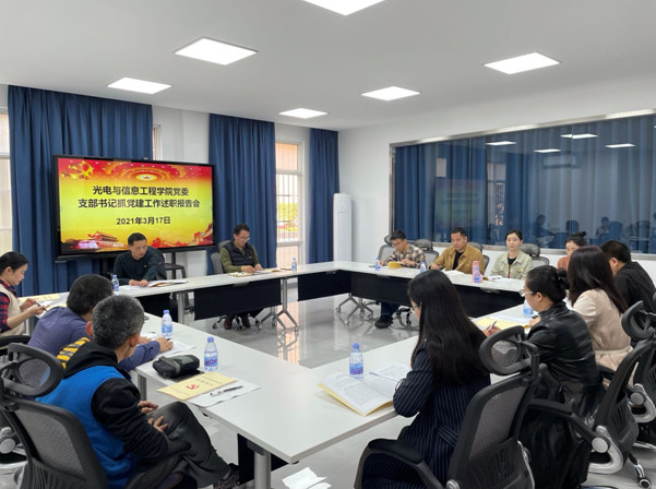 近日,光电与信息工程学院在理工3#109会议室召开2020年度党支部书记抓党建工作述职报告会。述职报告会采取现场述职与书面述职相结合的方式进行,在书面述职全覆盖的基础上,13位支部书记代表先后作现场述职。
