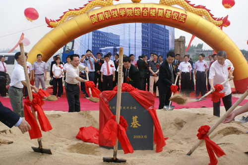 9月9日下午,闽南科技学院举行综合楼奠基仪式。菲华各界联合会主席、闽南科技学院董事长戴宏达,校领导张金栋、许明,南安市委副书记、教育工委书记曾焕楷,南安市人民政府副市长李清安,菲华各界联合会常务顾问、闽南科技学院常务副董事长戴新民,菲华各界海峡西岸访问团全体成员,闽南科技学院全体董事、党政领导,以及师生代表共1000多人出席了奠基仪式。