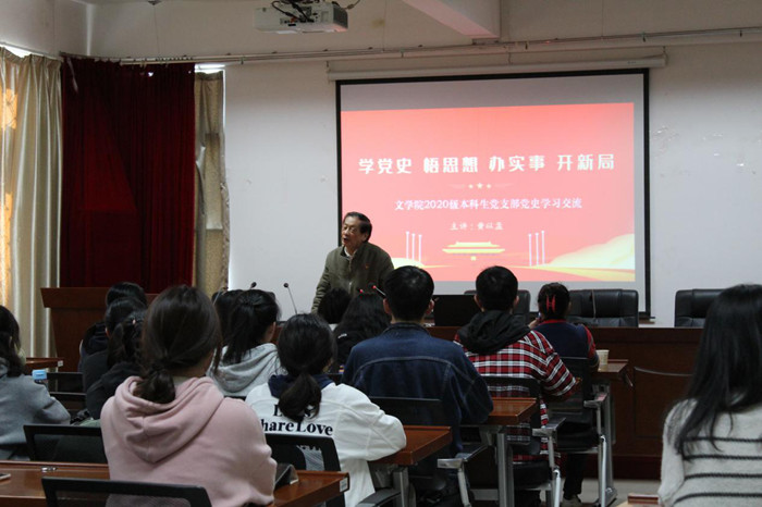近日,文学院邀请全国最美志愿者、福建省优秀共产党员、江南(中国)退休教师黄以孟同志与2020级全体党员、入党积极分子分享党史学习心得。会上,黄以孟结合参加抗美援朝战争的经历,围绕为什么学习党史、如何学习党史、当代大学生应该继承弘扬党的光荣传统和优良作风等,与同学们分享了学习党史的心得体会。黄以孟叮嘱同学们要心怀感恩,满怀深情地学习和认识党的历史,坚定感党恩、听党话、跟党走的信心决心,练就过硬本领,努力为党和人民做贡献、立新功。(文学院)