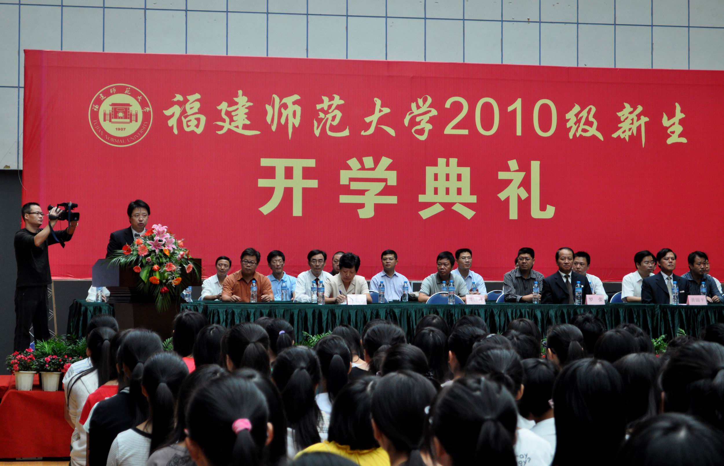 黄汉升校长发表了热情洋溢的讲话。他首先代表全体师生员工,对新同学加入福建师大这个大家庭表示热烈的欢迎。在简要介绍学校基本情况和特点后,黄校长送给2010级新生三句话。第一句话是诚以立德,信而致远,做一个品德高尚的人。希望同学们不仅要注重知识养料的汲取,而且要重视锤炼自己的品格,不断加强自身修养,培养自己乐观向上的品格、豁达包容的精神和诚信负责的作风。第二句话是志存高远,脚踏实地,做一个理想远大的人。希望同学们树立远大的志向,志存高远,胸怀天下。在仰望星空中,保持着谋划和引领社会发展的冲动、激情和追求;在脚踏实地中,刻苦学习,掌握引领未来的本领。第三句话是敏于求知,学以成业,做一个追求卓越的人。希望同学们用自己坚实的脚步,践行“知明行笃”的校训。既要“读万卷书”,又要“行万里路”,做到“知行合一”,在实践中加深对知识的理解,在实践中完成对理论的升华。