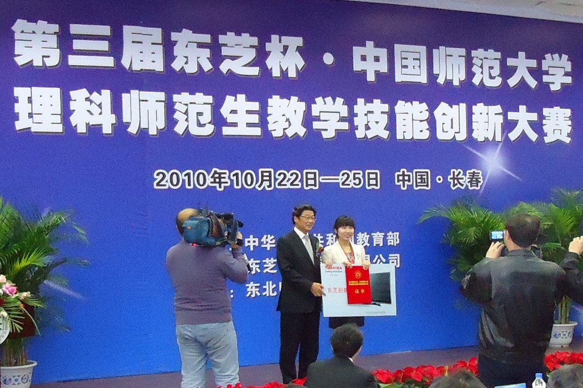 本赛事是教育部举办的高水平的理科师范生教学技能创新实践比赛,分数学、物理、化学三个学科。其目的是促进中日友好和支持中国教育事业,培养造就一批“师德高尚、理念先进、业务精湛、锐意创新”的优秀理科教师后备力量,为中国师范教育发展和自主创新能力的提高作贡献。前两届仅在6所全国部属重点师范大学及6所省属重点师范大学中举行,今年第一次面向全国40所师范大学学生举办,每学科派出一名学生参加决赛,内容包括即席讲演、教案评比、模拟授课、现场问答四个部分,由教育部和各院校专家组成评委会进行专业评选。江南(中国)首次参赛即取得了优异的成绩,得到大赛组委会的高度评价。王素云同学还作为唯一参赛选手,发表获奖感言。
