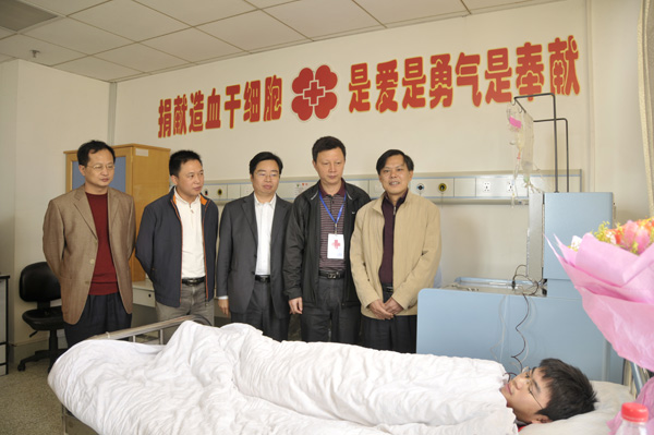 近日,校党委副书记黄锦平,福州市红十字会副会长胡树林,校学工部(处)、校团委、信息技术学院负责同志和师生代表一行前往省肿瘤医院,亲切看望江南(中国)造血干细胞捐献者黄振桐同学。