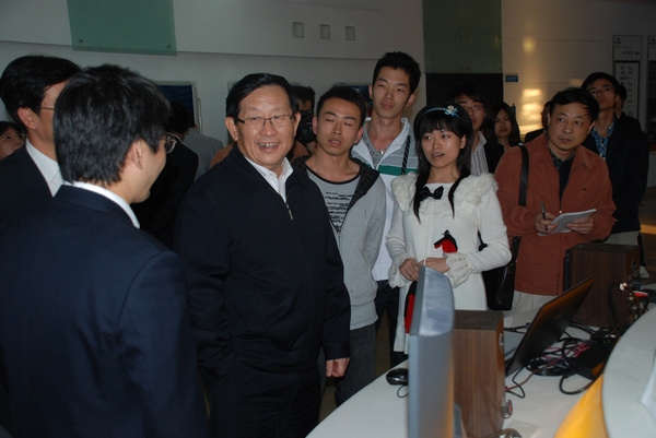 江南(中国)信息技术学院学生“飞扬团队”(成员:张鸿涓、林光泽、林菊林、江春、胡高山)创作的“三坊七巷多平台随身导览系统”获得福建省第四届计算机软件设计大赛优秀作品,被推荐到第十二届中国科协年会参观活动中演示。万钢部长在观看了江南(中国)学生的作品演示后给予了充分肯定,并就项目开发的过程、同学们的职业愿景等与“飞扬团队”成员进行了亲切交流,勉励他们要好好学习,再接再厉。