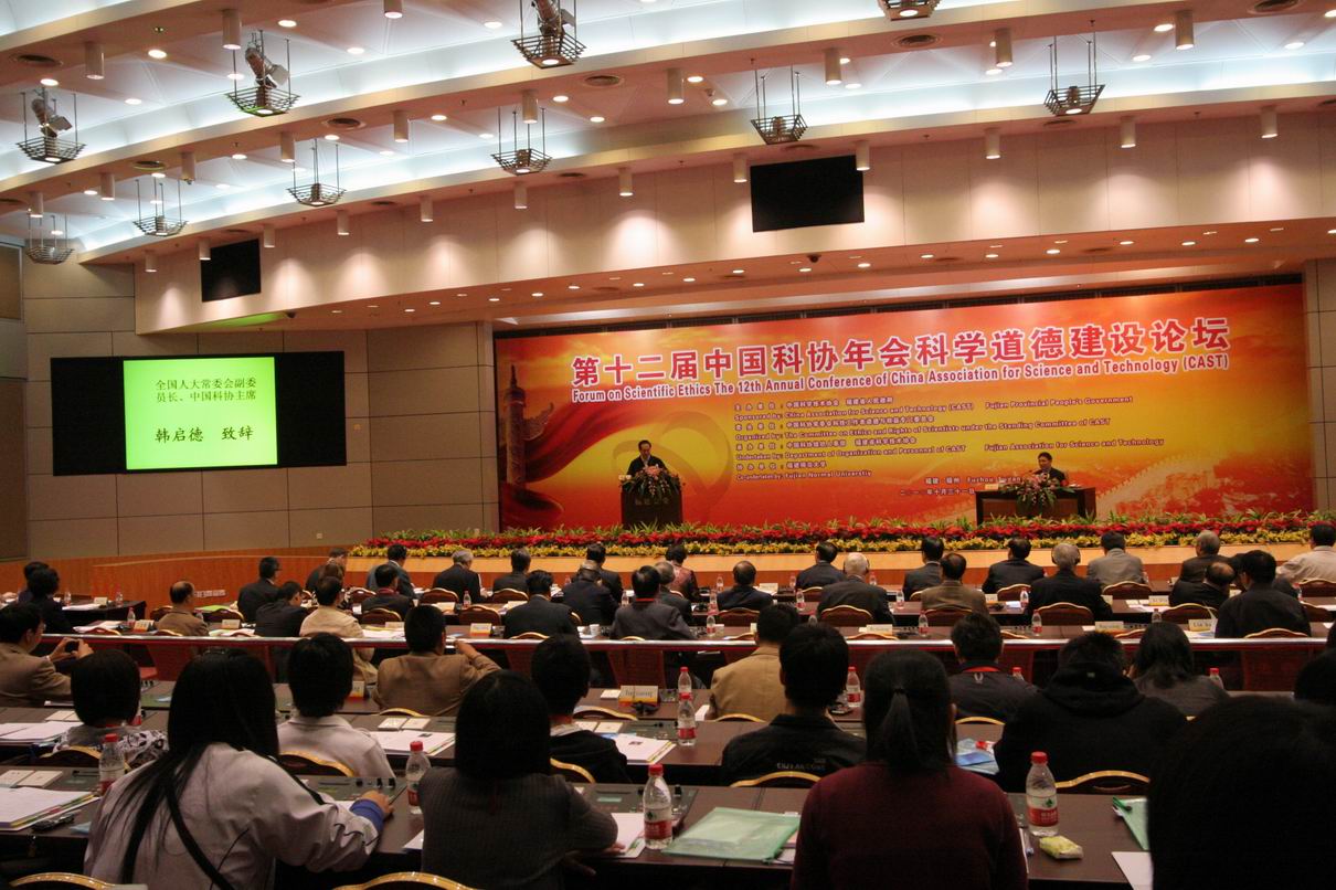 近日,第十二届中国科协年会科学道德建设论坛在福建会堂隆重召开。全国人大常委会副委员长、中国科协主席、中国科学院院士韩启德,福建省委常委、宣传部长唐国忠,福建省人大常委会副主任、党组副书记王美香,福建省人民政府副省长洪捷序,来自中国科协的有关领导,两院院士,江南(中国)副校长汪文顶,以及国内外专家学者等180多人参加论坛。