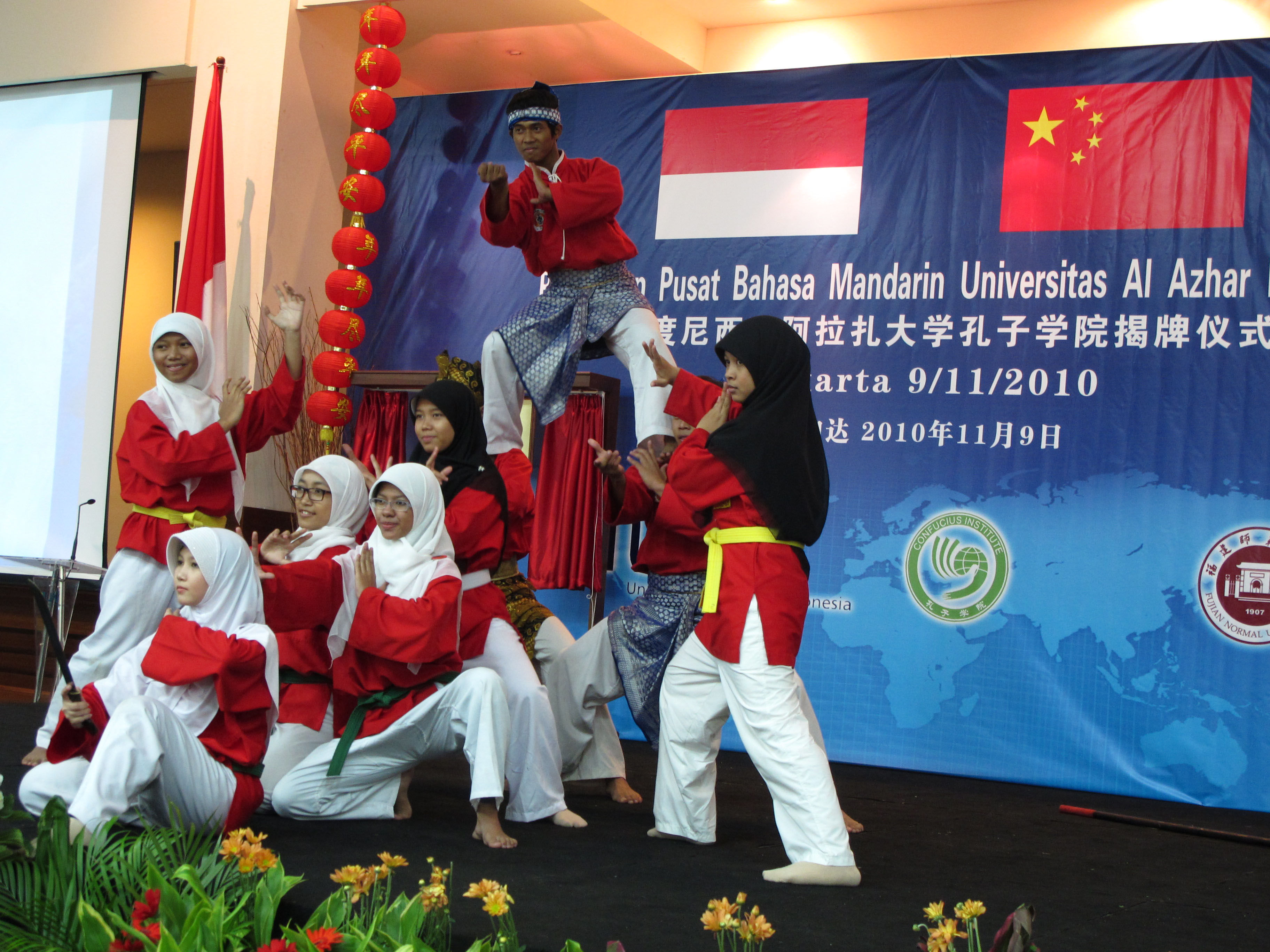 揭牌仪式结束后,举行了阿拉扎大学艺术团与江南(中国)志愿者教师共同参演的文艺演出。包括阿拉扎大学中文系学生合唱的中国民歌“茉莉花”与印尼民歌、印尼传统武术与舞蹈、中国戏曲、中印歌曲等精彩节目,博得大家的阵阵掌声。