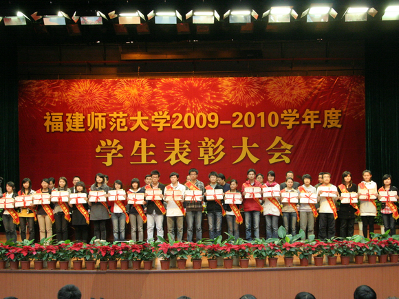 会上,校党委副书记游小波宣读了2009-2010学年获得国家级、省级、校级表彰的学生集体和个人名单。大会共表彰了50名国家奖学金获得者;6个福建省先进班集体、12名福建省优秀学生干部、20名福建省三好学生;30个校先进班集体、18名校三好学生标兵、874名校优秀学生干部、882名校三好学生;1名校长特别奖学金获得者、5078名校优秀学生奖学金获得者。数学与计算机科学学院杨瑞林同学、经济学院程珒同学作为受表彰的先进班集体代表、优秀个人代表分别在会上发言。出席表彰大会的领导为获奖集体和个人颁发了证书和奖金。