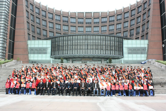 会后,校领导与受表彰学生代表在旗山校区图书馆前合影留念。
