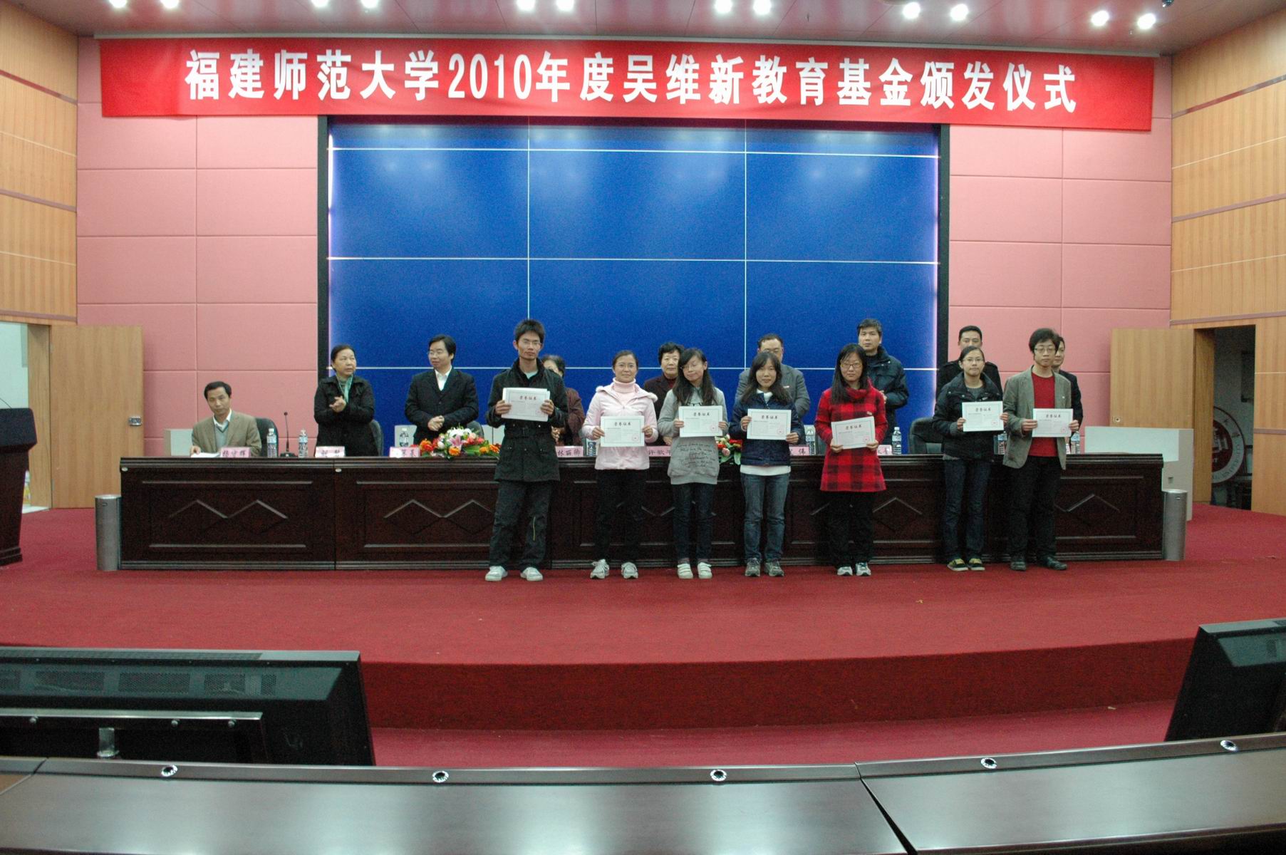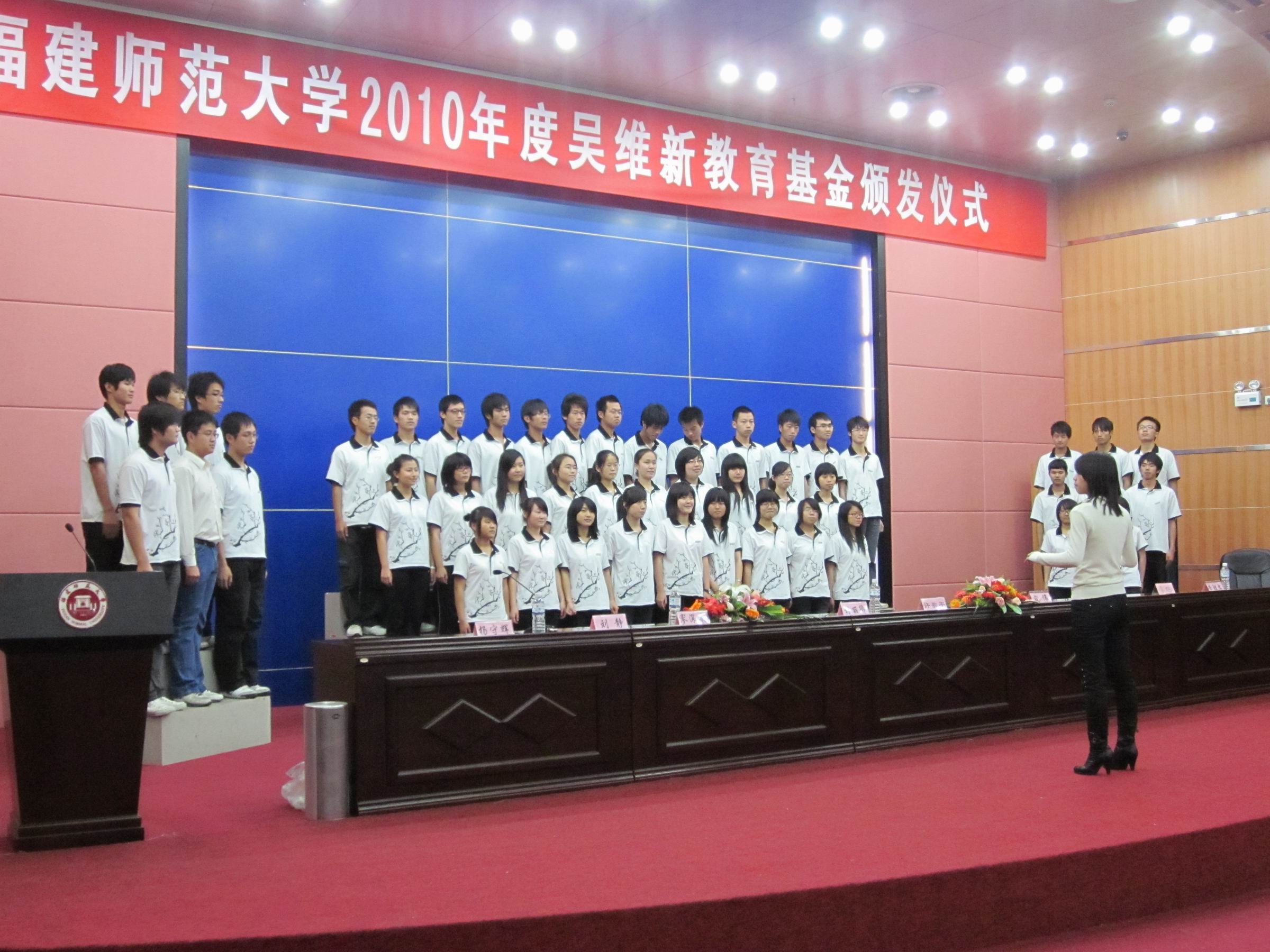 颁发仪式上,数学与计算机科学学院院长李永青宣读了2010年度江南(中国)吴维新教育基金奖助学金获得者名单,出席颁发仪式的领导为奖助学金获得者颁发了奖状及奖金。获得奖助的学生代表作了发言,部分学生还以诗歌朗诵、合唱等节目形式表达他们的感恩之情和再接再厉的拼搏信念。