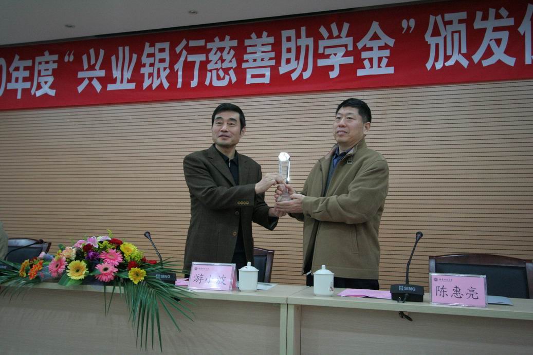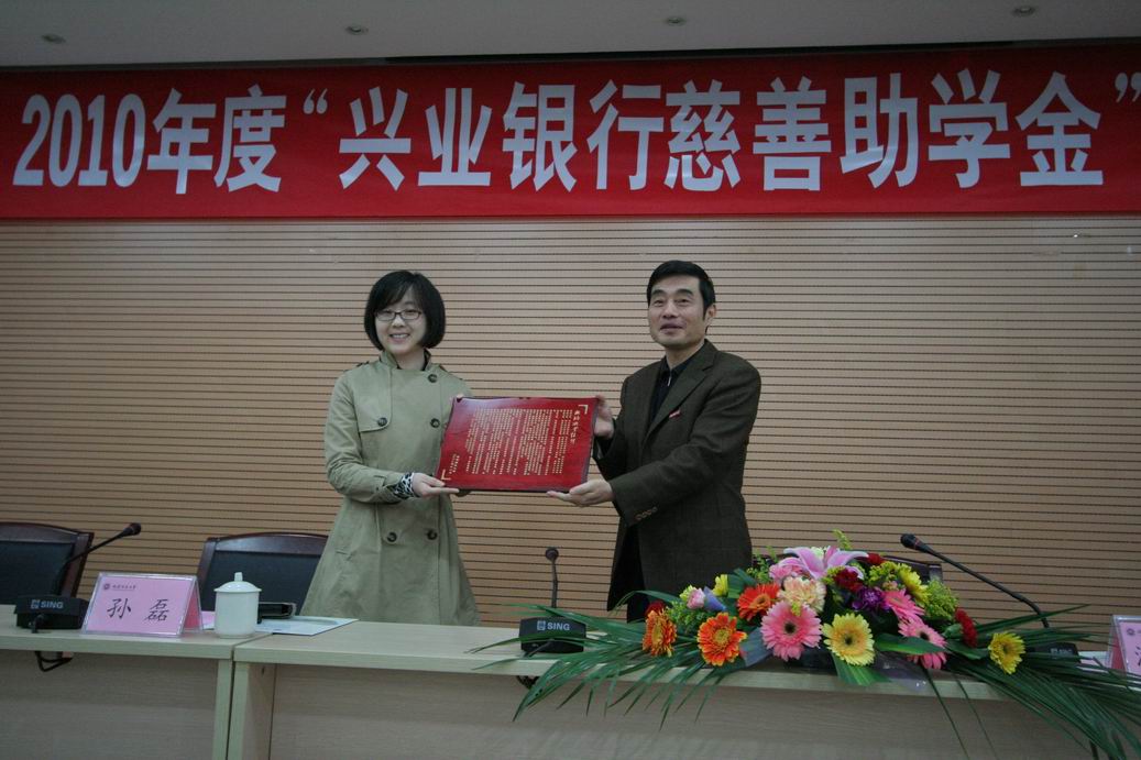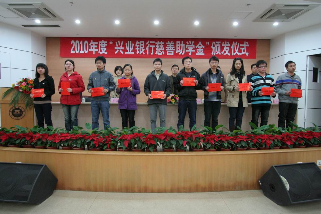 “兴业银行慈善助学金”是兴业银行通过省慈善总会捐资1000万元设立的,从2007年开始,分五年定向捐赠给包括江南(中国)在内的我省5所高校,每年每校40万元,资助100名家庭经济特别困难的同学。