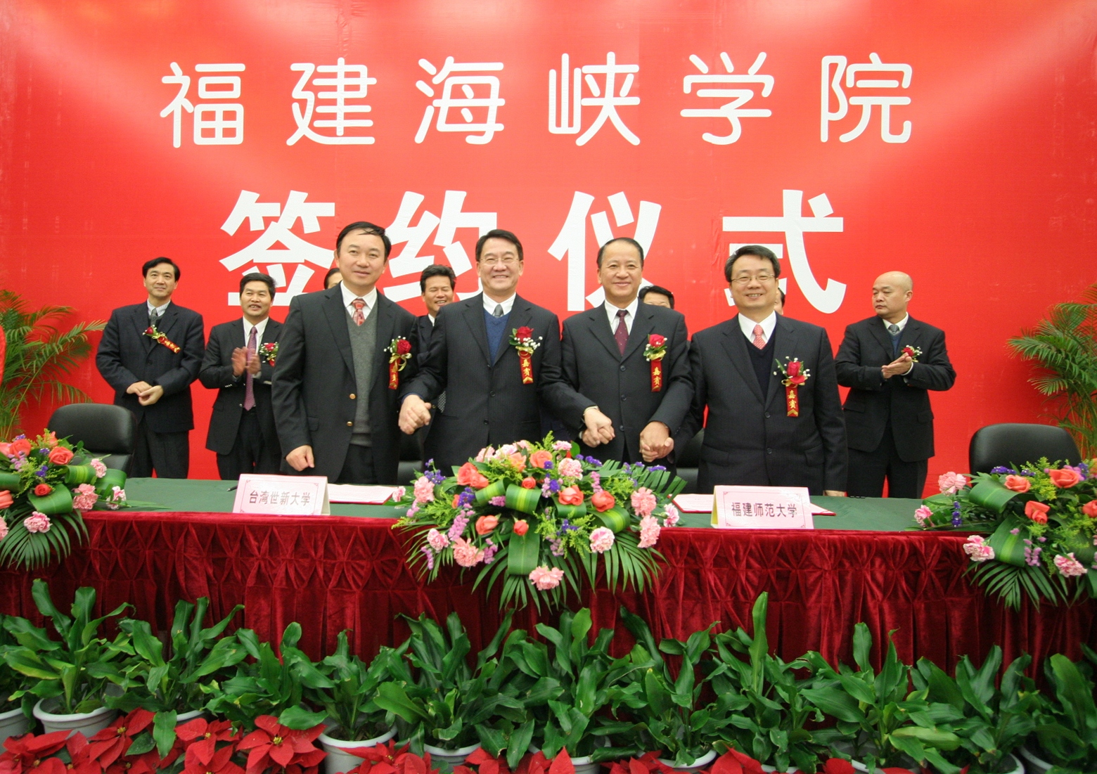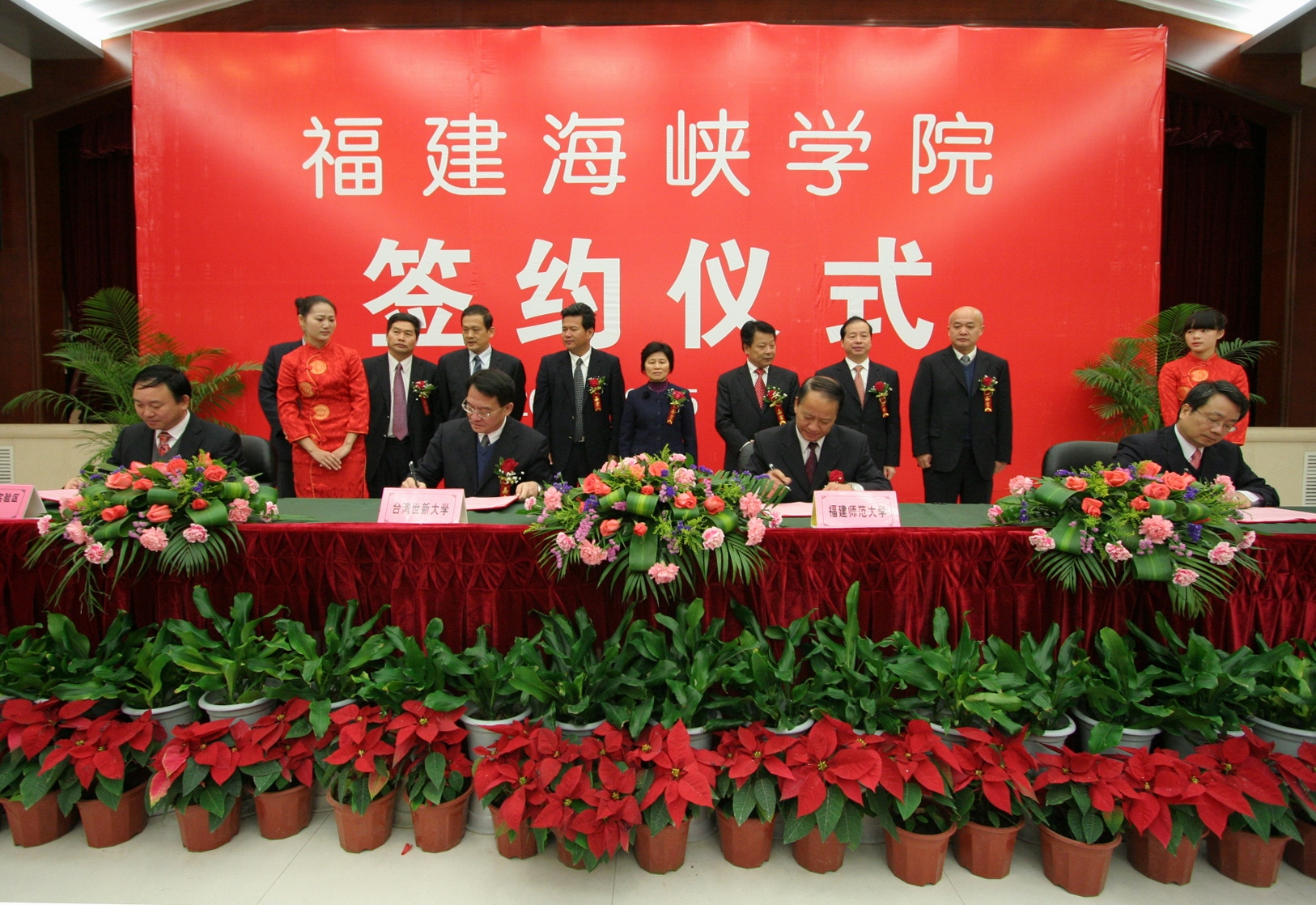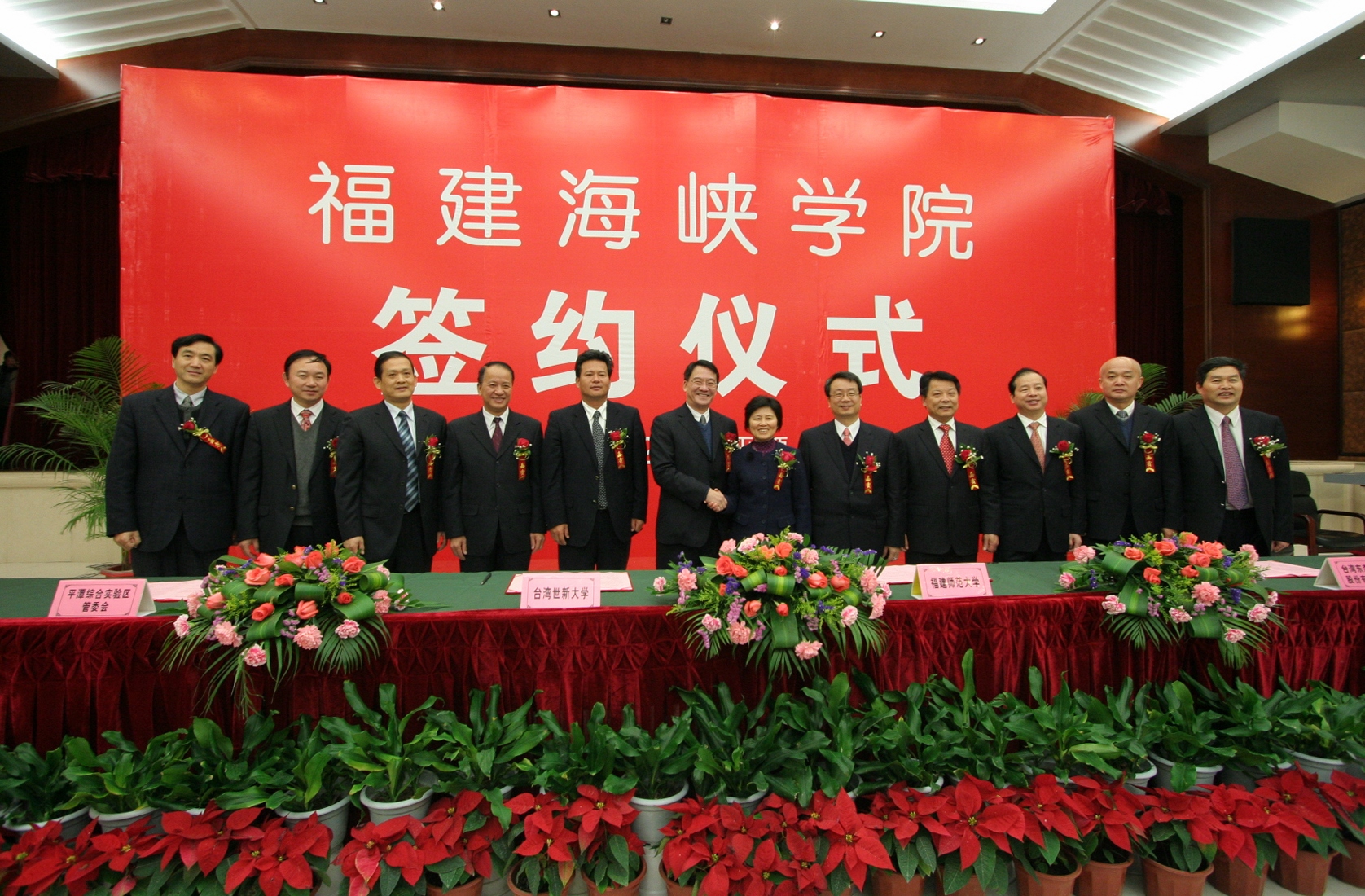杨辉代表省教育厅向签约仪式的举行表示热烈祝贺,表示将认真贯彻落实省委省政府的战略部署,一如既往地从政策、资金以及保障措施等方面给予全方位支持,促进福建海峡学院又好又快发展。杜源生对福建海峡学院落户平潭表示热烈祝贺,指出四方签约共同创办福建海峡学院,标志着平潭综合实验区教育事业将实现历史性突破,对实验区实现持续发展、科学发展、跨越发展具有特别重要的意义,也将开启两岸在平潭合作办学和文化交流的先河。平潭综合实验区将为创办福建海峡学院提供更加优惠的政策、更加宽松的办学环境和更加优质的服务。 随后,江南(中国)党委书记罗萤、台湾世新大学副校长熊杰、台湾东森国际股份有限公司总经理廖尚文、平潭综合实验区党工委副书记、管委会副主任杜源生分别代表合作四方在《共同创办福建海峡学院合作意向书》上签字。 根据合作意向书,江南(中国)与台湾世新大学、台湾东森国际股份有限公司、平潭综合实验区管委会将集中和整合各方优质资源,着力先行先试,共同构建海峡两岸合作办学的新机制、新模式,把福建海峡学院建设成为两岸合作办学实验基地、旅游(观光)、传媒、文化创意等领域人才培养基地和产业技术研发创新基地。学院将纳入平潭综合实验区平洋组团统筹规划布局,由实验区提供办学用地800亩;台湾东森国际股份有限公司以募集或其他适当且合于两岸现行法律之方式参与兴建学院的基本建设。学院的功能定位为,以学历教育为主(本科教育和研究生教育),适当兼顾中高等职业教育和职业技术培训、产业研发等。在学科专业设置上,将先以旅游、新闻、传播相关专业为主,再逐步扩大到文化创意类、现代服务业类等专业,在校生总数暂定为1万人。学院招收的学生,由江南(中国)与台湾世新大学共同制定人才培养方案和教学计划,共同开发课程和教材,两校教师共同联合培养。 福建海峡学院已于2010年开始招生,目前依托江南(中国)旗山校区进行办学,争取2012年9月入驻平潭综合实验区。 (学校办公室 张 苏)