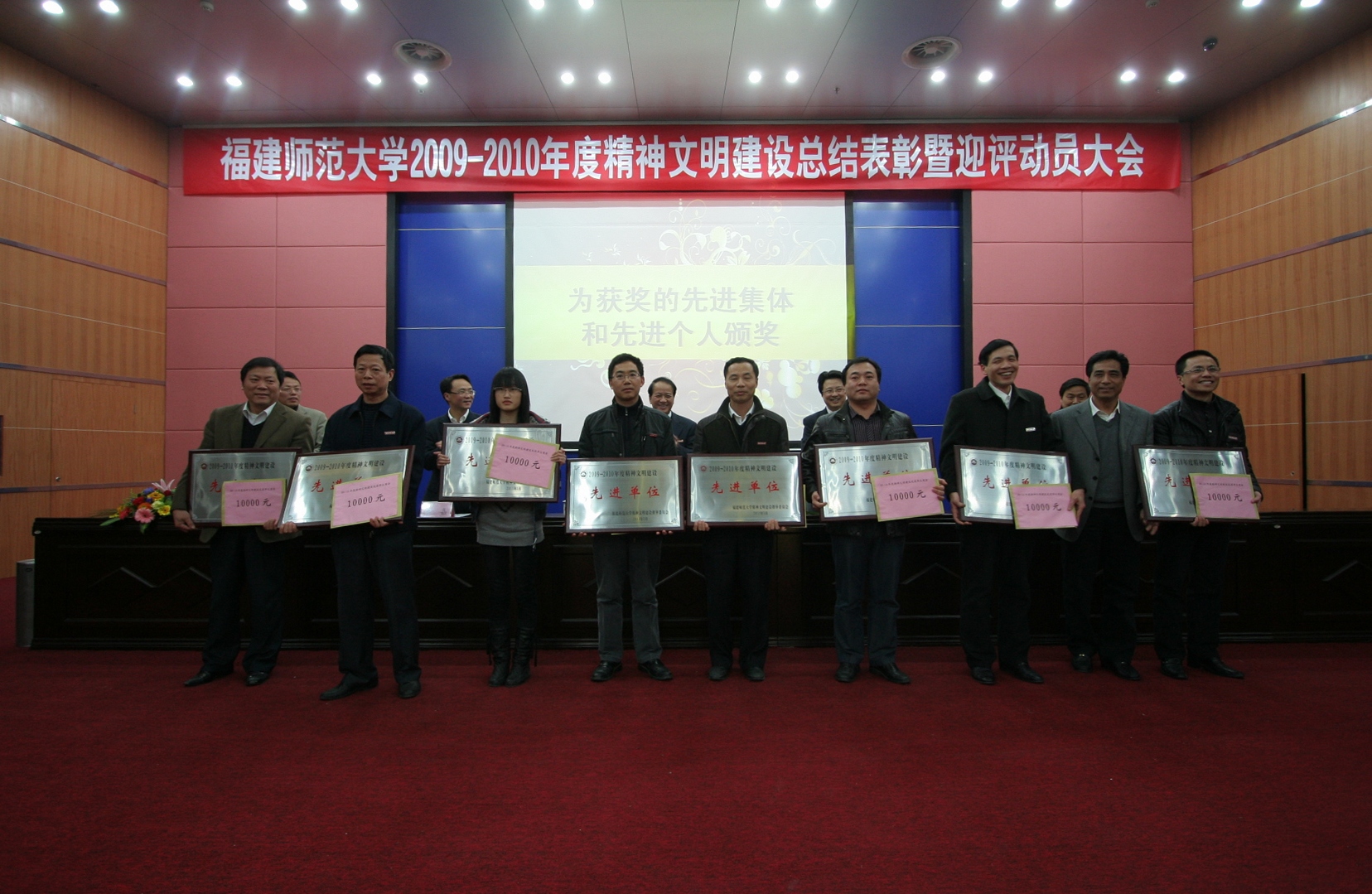 会议表彰了2009—2010年度精神文明建设先进集体和先进个人。先进集体代表地理科学学院、校工会和生命科学学院分别作了经验交流。
