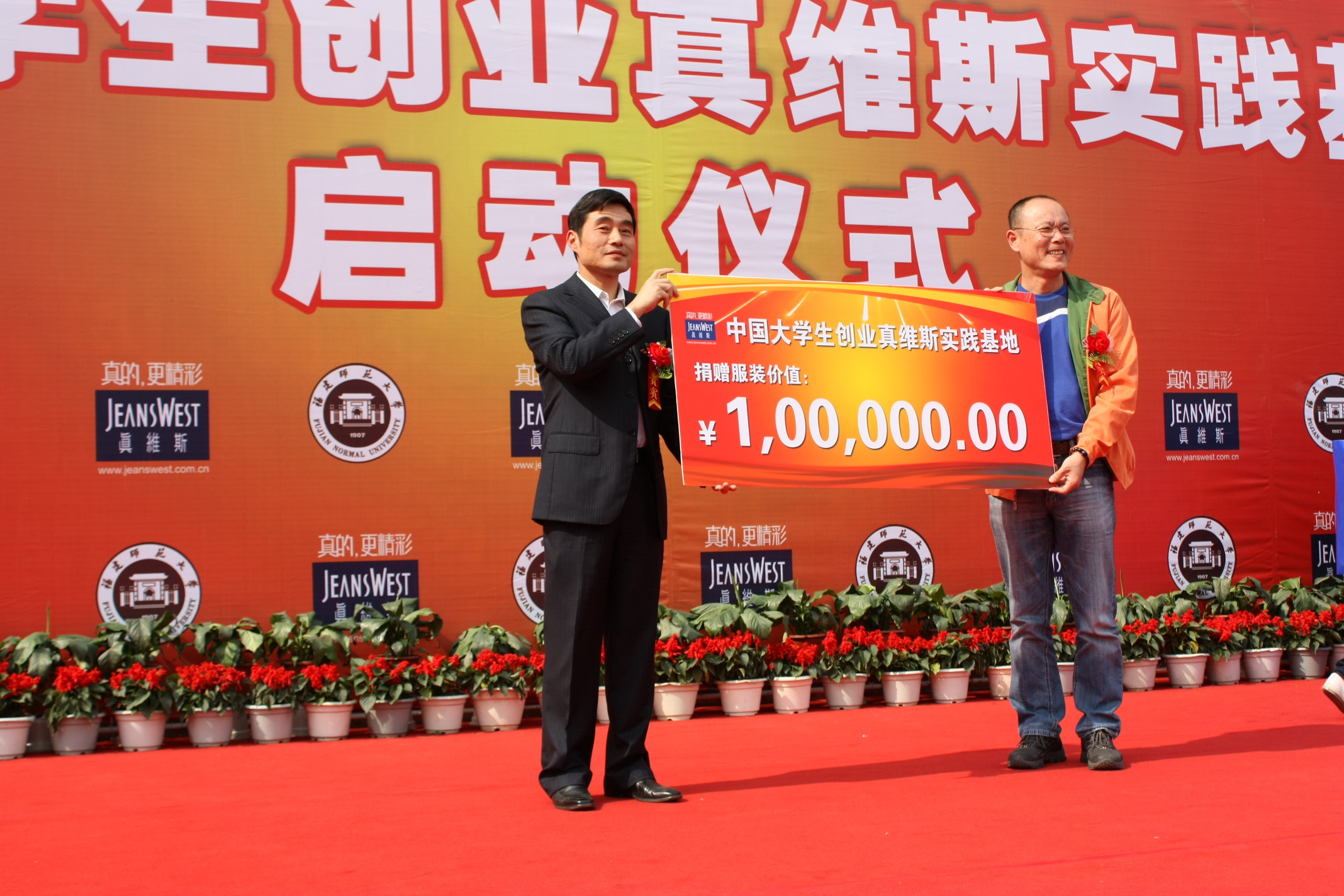 冯庆崧代表真维斯公司向江南(中国)家庭经济困难学生赠送2700件服饰,向江南(中国)中国大学生创业真维斯实践基地颁发创业金钥匙,希望越来越多的学校加入到“中国大学生创业真维斯实践基地”这一项目中来﹐在更大的范围普及大学生创业就业新模式。受助学生、中国大学生创业真维斯实践基地学生代表、经济学院2009级吴小锋同学表示,今后会更加努力用实际行动树立当代大学生的新形象,为贫困大学生的自立自强增添新的注脚,让爱心从这里起飞,用真心和诚心关爱他人,用知识和技能造福社会。