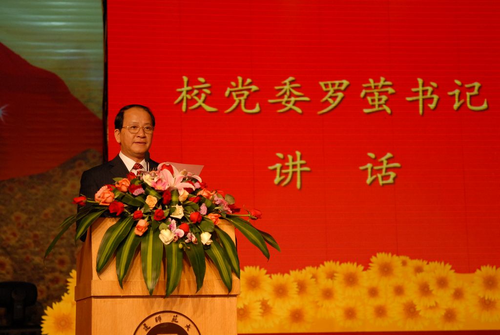 校党委书记罗萤发表热情洋溢的讲话,充分肯定了一年来全校各级团学组织按照学校第十四次团代会、第二十二次学代会提出的目标任务,团结带领全校团员青年奋发成才、创先争优,为推动学校各项事业科学发展、和谐发展、跨越发展做出的积极贡献。罗萤指出,今天,我们隆重纪念建党90周年和五四运动92周年,就是要进一步弘扬“爱国、进步、民主、科学”的五四精神,进一步坚定“永远跟党走”的理想信念,以青春和智慧促发展、促跨越。他对全校青年学生提出两点希望:一是要学党史、知党情,永远跟党走;二是要志存高远、脚踏实地,建设伟大祖国。罗萤强调,要认真学习胡锦涛总书记在清华大学百年校庆上的重要讲话精神,胸怀远大理想,陶冶高尚情操,培育科学精神,努力练就建设国家、服务人民的过硬本领,沿着党指引的方向健康成长,以实际行动创造无愧于人民、无愧于时代的青春业绩,唱响更加嘹亮的青春之歌。