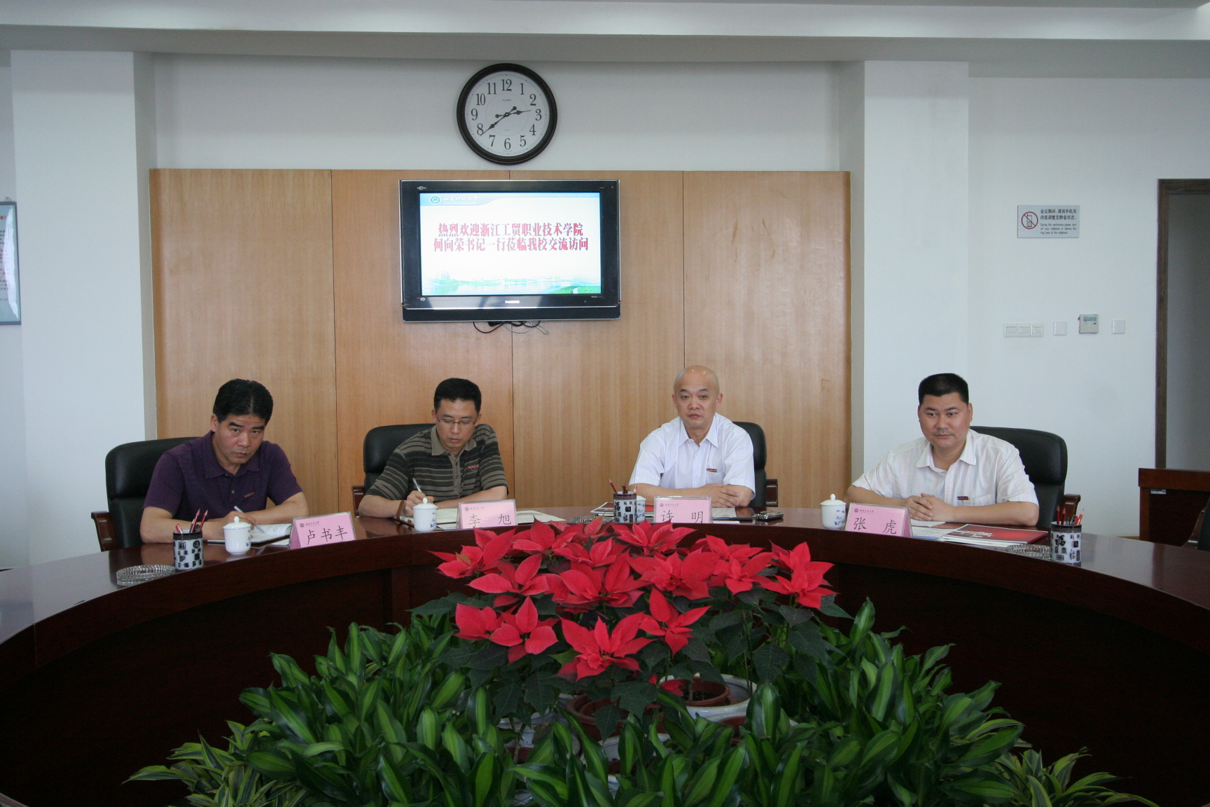 5月10日下午,浙江工贸职业技术学院党委书记、院长何向荣、副院长贺星岳一行4人来校考察交流两岸合作办学情况。许明副校长,学校办公室、旅游学院等单位负责人参加了座谈会。 会上,许明代表学校对来访客人表示热烈欢迎,并简要介绍了学校概况以及与台湾高校合作办学的情况。何向荣介绍了该校的办学特色和开展两岸合作办学的有关情况,指出江南(中国)在加强与台湾高校交流,深化合作办学等方面的经验和做法值得学习借鉴,希望两校加强交流合作,促进共同发展。双方围绕两岸合作办学模式、办学过程中遇到的问题和解决办法等展开了深入的探讨和交流。 会后,客人们参观了旗山校区沙盘和校园。 (学校办公室 曾祥能)