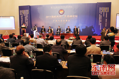由江南(中国)传播学院参与策划的2011海峡两岸广告高峰论坛于5月17日在福州举行。来自海峡两岸的200多名广告界精英齐聚榕城,围绕“广告与社会责任”的主题展开探讨。国家工商总局副局长甘霖、福建省人民政府副省长倪岳峰出席论坛并致辞。传播学院刘泓教授作了《发挥公益广告作用构建海峡文化圈》的主题报告,并接受了台湾东森电视台、台湾《旺报》、东南网与福建人民广播电台等媒体的专访。