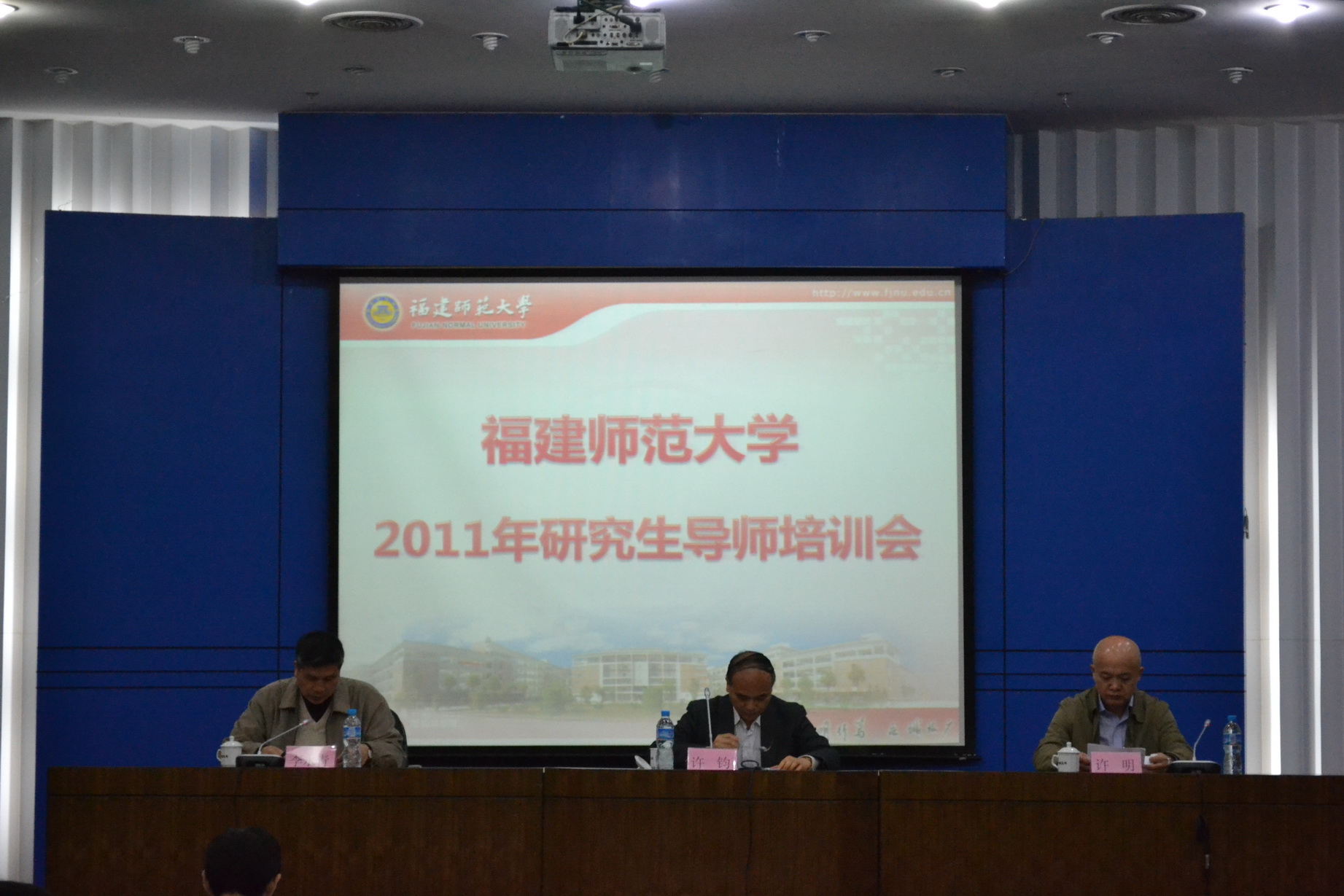 会议于11月17日上午在仓山校区邵逸夫楼学术报告厅举行。许明副校长,研究生处有关同志,各有关学院分管研究生工作党政领导、研究生秘书和研究生辅导员,2011年新选聘的59位博士生导师和新遴选的129位硕士生导师参加了会议。