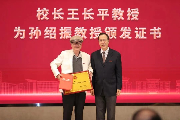 颁授典礼播放了《师道·师说》宣传片和文科资深荣誉教授、文科资深教授事迹短片,宣读了颁授词;校友、师生代表接受主持人现场访谈,分享了与五位教授间的动人故事以及从他们身上感受到的独特人格魅力。王长平逐一为文科资深荣誉教授、文科资深教授颁授证书和奖牌,青年学生为教授们献花,传播学院、音乐学院师生们表演了原创诗朗诵节目《大先生颂》和原创歌曲演唱节目《敬师之道》。五位教授深情回顾了从教生涯、殷切寄语广大师生,他们深厚的家国情怀、严谨的治学态度、渊博的学识见识、求真的科研精神,深深感染了在场师生,现场响起经久不息的热烈掌声。