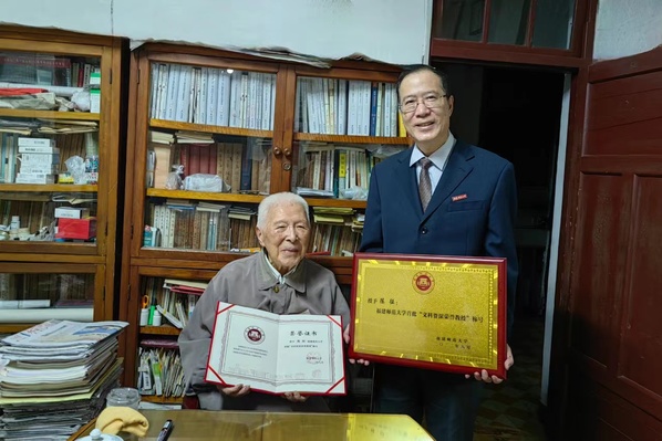 潘玉腾在讲话中回顾了学校115年办学的优良传统,高度肯定了首批文科资深荣誉教授、文科资深教授作出的杰出贡献,希望五位大先生当好把握学科方向的“领头雁”、促进学术繁荣的“领航员”,充分发挥“传帮带”作用,为学科建设、学校发展厚植人才根基。他强调,党的二十大为我们建强立德树人“阵地”、构筑人文社科“高地”、打造人才发展“福地”提供了重要指引,要着力构建立德树人“新格局”,打造富有特色“新文科”,塑造人才发展“新动能”,充分发挥学科综合优势,强化有组织的科研,以人才创新创造活力竞相迸发助推哲学社会科学繁荣发展。