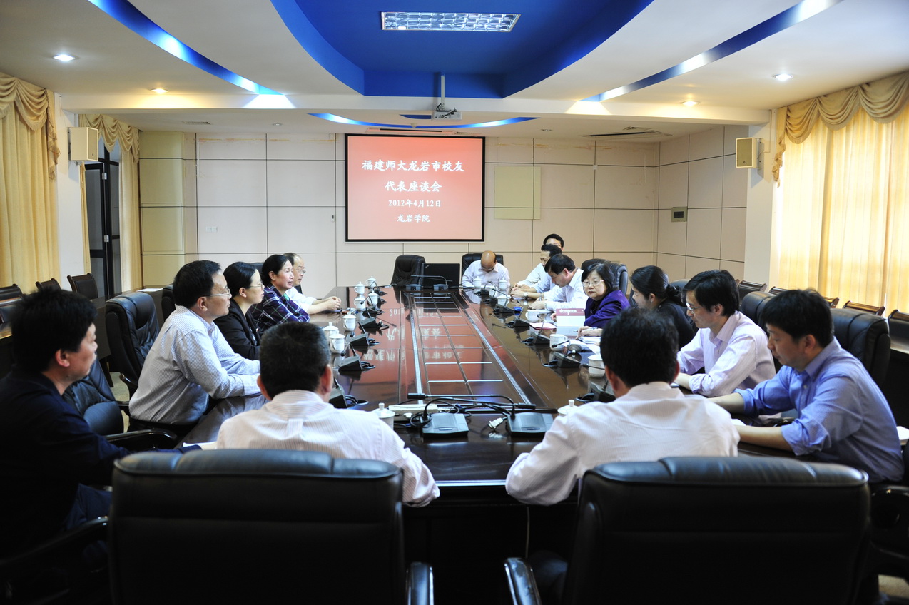 4月12日,座谈会在龙岩学院召开。龙岩学院党委书记李金莲代表当地校友感谢李敏副校长一行来访。龙岩学院副院长李源江、办公室主任曾兵、人事处处长戴瑞琳、科研处处长温德才、思政部副主任杨玉凤,龙岩市教育局局长朱瑞虹、市公务员局局长林虹,市委副秘书长张树淳,龙岩师范学校校长张茂林,闽西时报副总编郭志丹,新罗区教育局副局长吴瑾等校友出席了座谈会。