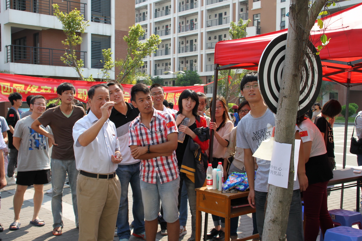 游园现场,趣味猜谜、飞镖射击、玩转呼啦圈、你画我猜、一起来钓鱼等活动吸引了大批同学前来参加,现场人头攒动、热闹非凡。不少学院还结合国庆和校庆主题,推出红歌大比拼、校园美景拼图比赛、校史知识竞答等游戏,充分展现了青年学生爱国爱校的真挚情感。校学生会在微博上发起了#国庆微祝福#微活动,倡议同学们在微博平台上发出“微声音”,表达爱国情。同学纷纷写下“祖国我爱你”、“愿你的明天更美好”等祝福话语。