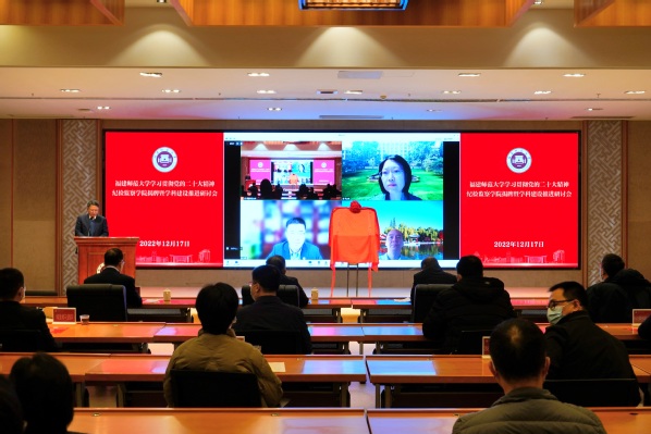 12月17日,“学习贯彻党的二十大精神 纪检监察学院揭牌暨学科建设推进研讨会”在旗山校区举行。省教育厅党组成员、副厅长(正厅长级)刘健,省纪委监委第三纪检监察室主任黄清波,清华大学党委副书记、纪检监察研究院院长过勇,中国纪检监察学院党委副书记兼纪委书记蔡志强,中共中央党校(国家行政学院)政治和法律教研部副主任(主持工作)封丽霞,校党委书记潘玉腾,校长王长平,副校长陈庆华,校纪委书记、省监委驻江南网页版官网监察专员林月恩,以及有关职能部门、纪检监察学院负责人和师生代表参加了会议。会议由陈庆华主持。