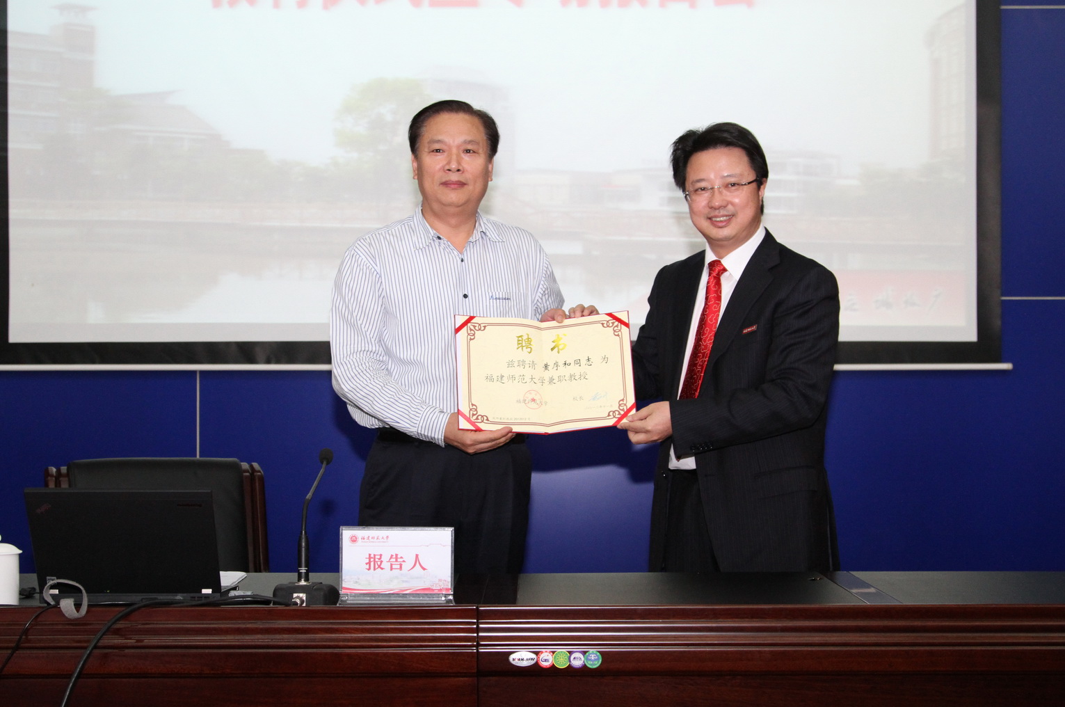 学习会前,举行了黄序和厅长兼职教授敦聘仪式。黄汉升校长为其颁发了聘书并佩戴江南网页版官网校徽。