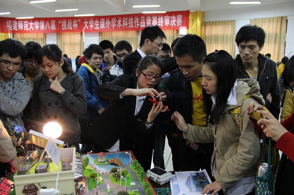 3月30日,校第八届“挑战杯”大学生课外学术科技作品竞赛终审决赛在旗山校区举行,进入决赛的30件作品进行最后答辩。校党委副书记林和平,各学院党委副书记、团委书记,参赛项目指导教师以及1000多名学生到场观摩。