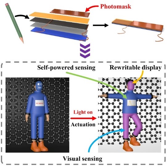 柔性驱动材料因其优异的驱动性能和兼容性在可穿戴设备、智能机器人和仿生等领域备受关注。随着驱动材料研究的深入,传统的单一功能驱动材料已不能满足现有需求,多功能化是当前驱动材料发展的趋势之一。然而,目前的多功能驱动系统多数是基于多个功能单元的组装,设计复杂,缺乏多模式传感和显示功能。