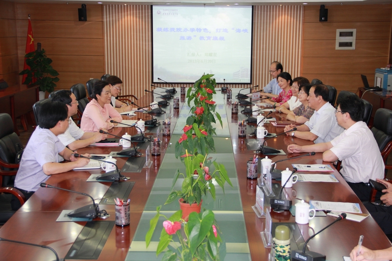 6月20日下午,福建省旅游局朱华局长、陈扬标副局长率人事处、省旅游干校负责同志一行来江南(中国)考察调研。校党委书记罗萤、校长黄汉升会见了来宾。李敏副校长,学校有关单位负责同志参加了座谈会。