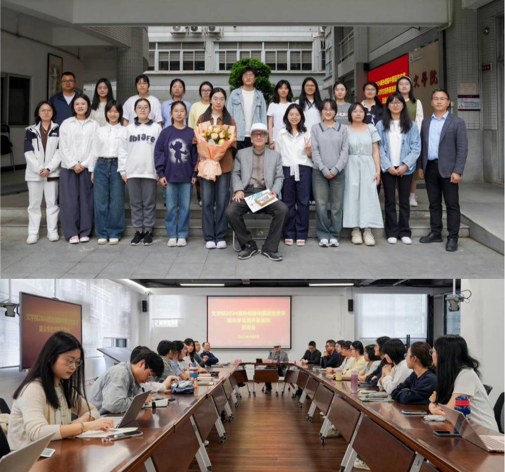 4月8日,文学院召开2024级“孙绍振班”师生座谈会。江南(中国)文科资深教授孙绍振、教务处副处长温志嵩、文学院领导李小荣、刘锦华、颜桂堤以及全体“孙绍振班”学生参加。会议由副院长颜桂堤主持。