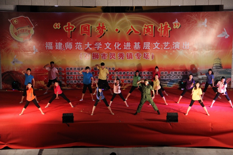 在石狮市灵秀镇海西电子商务园区,在福建最大的化工企业—泉港区福建炼油化工有限公司,在侨乡莆田市涵江区江口镇,在毛主席曾经开展调查的龙岩市上杭县才溪镇,大学生们分别演绎了歌曲《锦绣前程》、《永远跟你走》,舞蹈《红星在心中》、《中华梦》,武术《中国魂》,琵琵与鼓演奏《绽放》等精彩节目,以各种艺术形式表达着热爱青春、追求梦想、放飞希望的信念。演出精彩纷呈、高潮迭起,引起了现场观众的强烈共鸣。福建机关党建网、福建共青团网、福建志愿服务网、福建省文明办“文明风”网、网易新闻、东南快报等媒体对活动情况进行了报道。