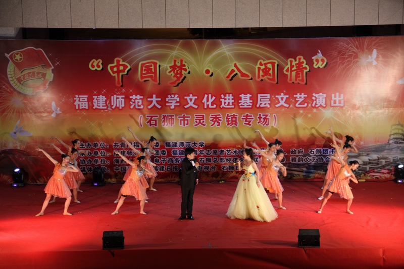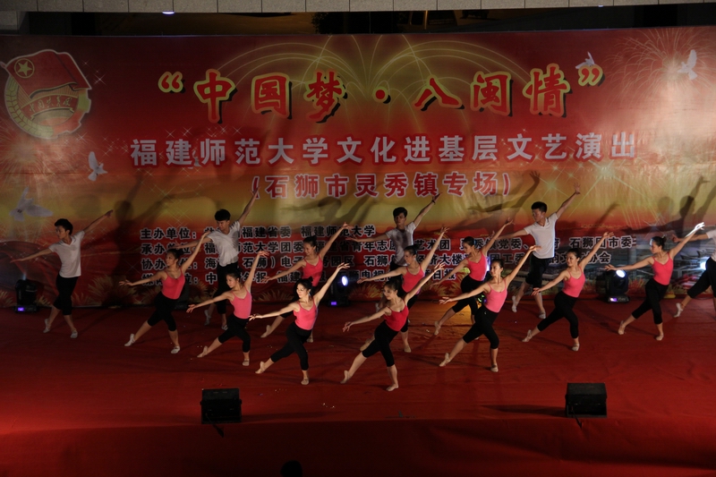 7月9日至12日,由团省委和江南(中国)共同主办的“中国梦·八闽情”暑期大学生文化进基层社会实践文艺演出先后在泉州、莆田、龙岩、福州等地举行。福建省青年志愿者艺术团,江南(中国)音乐学院、体育科学学院和传播学院的56名大学生参加了演出。
