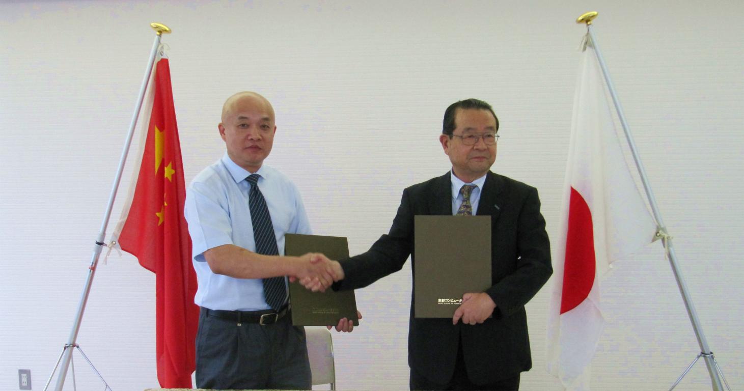 在日本京都情报大学院大学,双方举行正式会晤,回顾了两校的合作历史,祝贺两校合作项目顺利升格为本科项目并正式招生。会晤后,双方举行教育合作交流协议的签署仪式。代表团还参观了计算机博物馆和教学设施,并观摩了课堂教学。