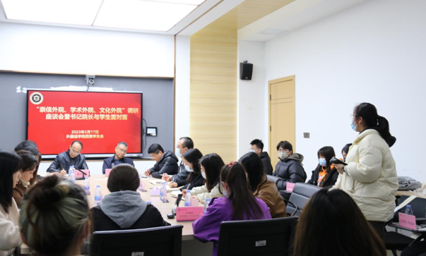 2月17日,外国语学院举行“崇信外院、学术外院、文化外院”座谈会暨书记院长与学生面对面活动。学院领导林鲁文、葛桂录、吴志锋、兰春寿,团委书记黄远及各年级辅导员,与来自研究生、本科生各年级的近30位学生代表深入探讨学风建设,共话学生成长和学院发展。