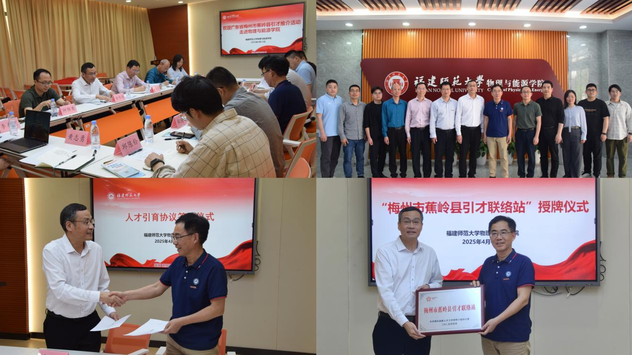 415日,物理与能源学院举行“校地合作·英才汇聚”交流活动暨“蕉岭县引才联络站”授牌仪式。蕉岭县委常委、组织部部长谢伟传,常务副部长涂永平一行,学院党委书记林玉辉、副书记阮学旺以及相关人员参加活动。