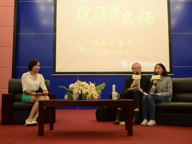 围绕“中国崛起是否可持续”的主题,大卫•科茨教授高度评价了中国改革开放以来的发展成就和国际贡献。他认为,面对机遇和挑战,中国要积极稳妥地处理好国企改革和市场开放,缩小贫富差距,扩大市场内需,走出一条具有自身特色的社会主义发展道路。当被问及美国发展对中国的启示时,他当众唱起一首关于美国19世纪环境污染的民谣,并指出国家崛起不能以环境为代价。师生们对他严谨而幽默的讲话报以热烈的掌声,并通过微博、现场提问等方式参与互动。经济学院2011级万琦同学担任了现场翻译。