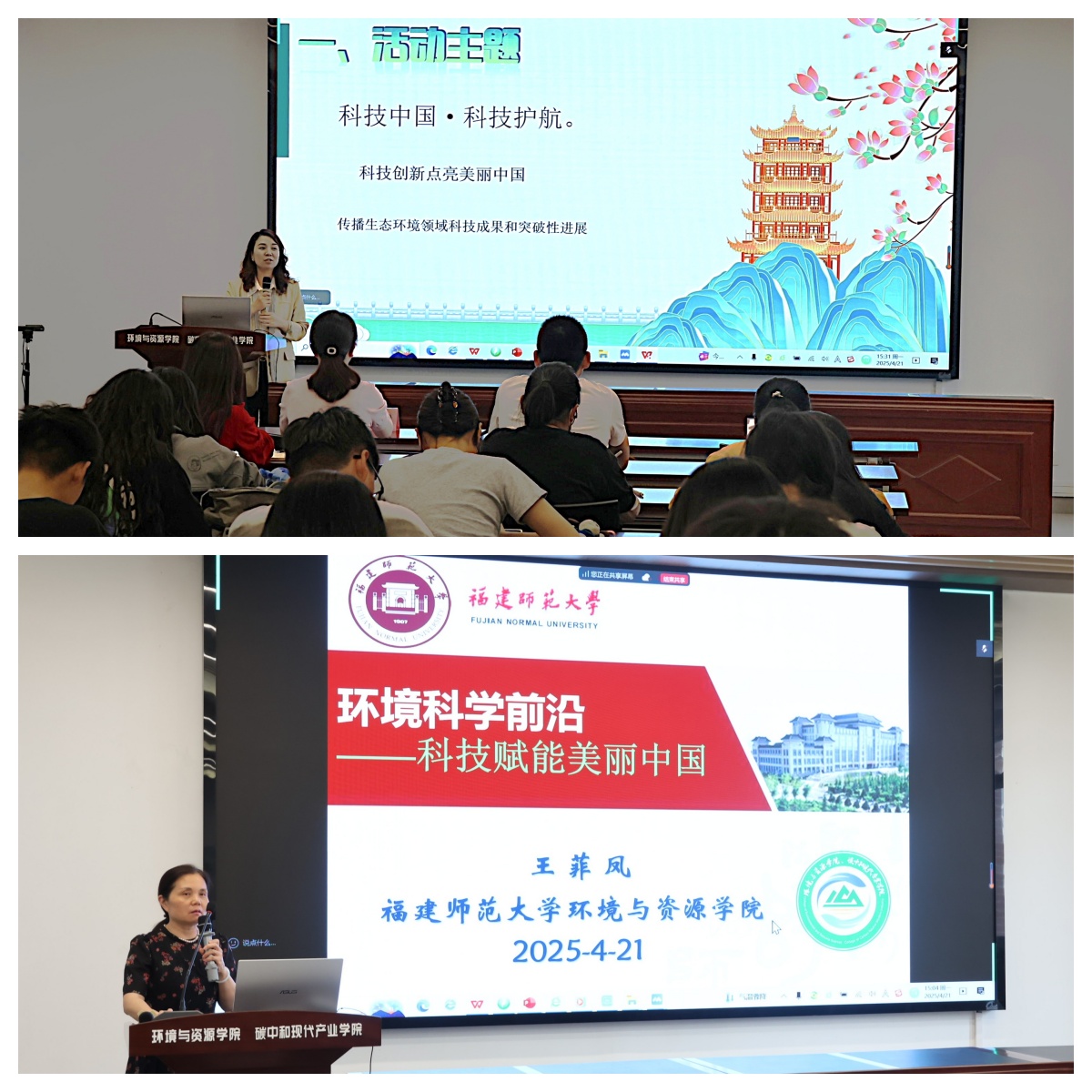 王菲凤教授向大家科普了环境领域的前沿科学,生动讲解如何用新理论的科学知识和新装备的工程技术赋能美丽中国建设。万晶迎从演讲的外在形态和内涵表达等方面阐释如何做好“美丽中国讲解员”。