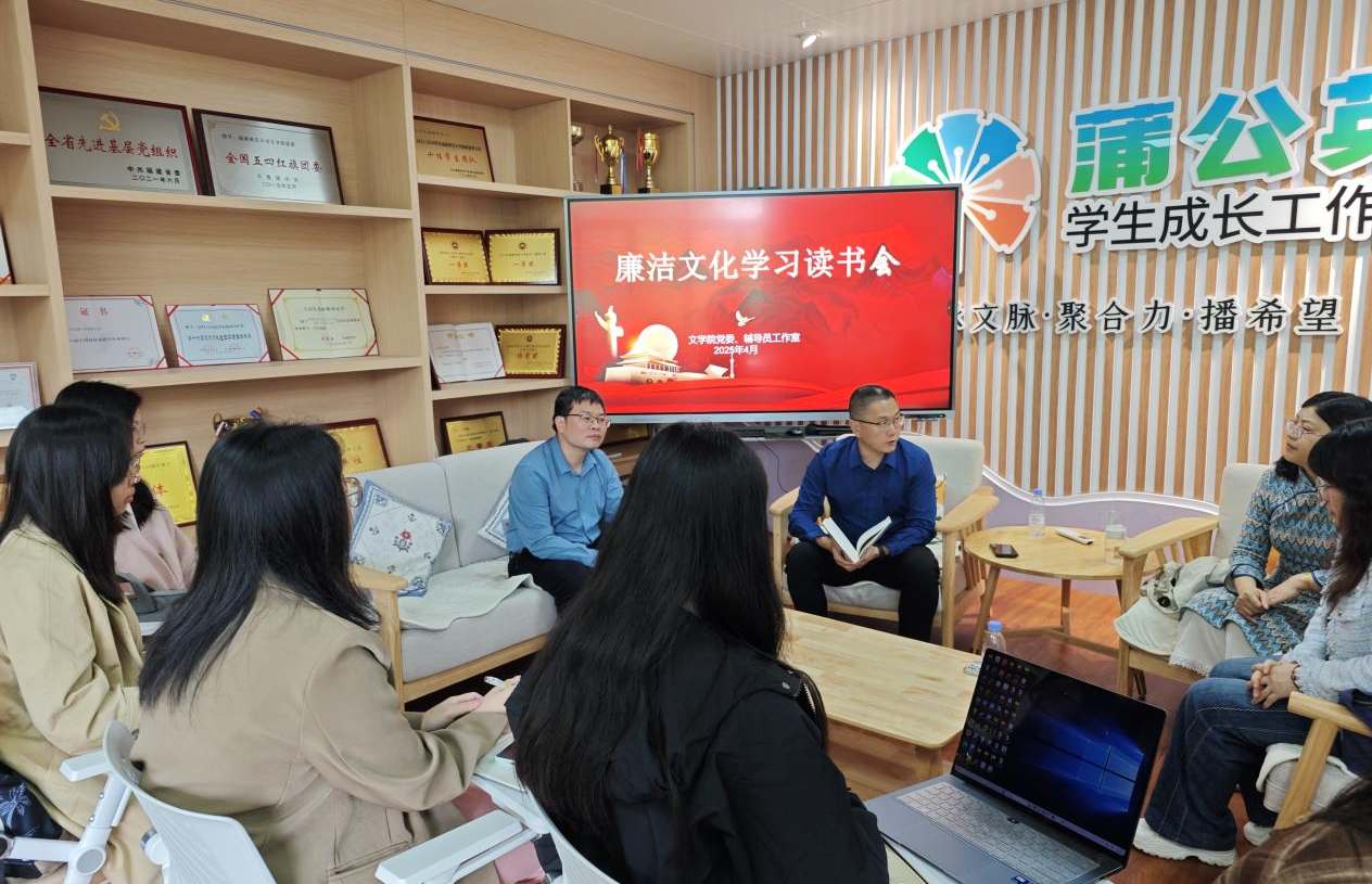 4月28日,文学院在邵逸夫楼会议室开展廉洁文化主题读书会活动。学院党委副书记、纪委书记刘锦华,陈鸿副教授、平颖副教授,纪检监察学院丘启林老师及学生代表参加。丘启林以《中国廉政史鉴》为脉络,梳理中国古代廉政制度演变与思想精髓,建议跨学科联动进行廉政文化研究。刘锦华副书记结合《廉吏传》中的历史人物事迹,强调大学生应从传统文化中汲取养分,树立“廉洁自律、诚信守责”的价值观。在交流环节,师生围绕廉洁文化的当代价值发掘和媒介传播展开深入讨论,深化廉洁文化的现实意义。(文学院)