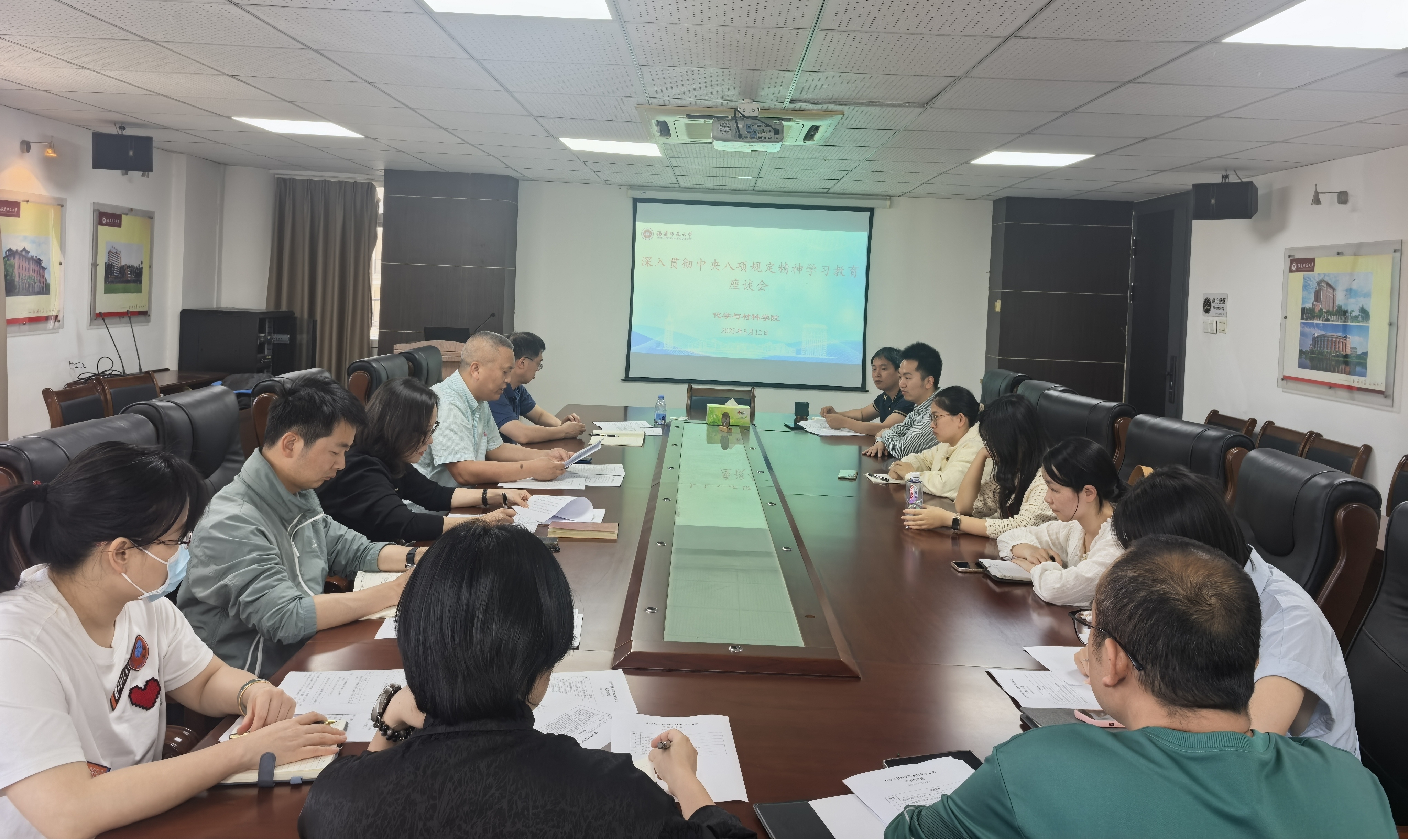 5月12日,化学与材料学院召开深入贯彻中央八项规定精神学习教育座谈会。学院领导班子成员,年轻干部、新提拔、新入职教师代表共20余人参加。座谈会由党委副书记(主持工作)张娴主持。
