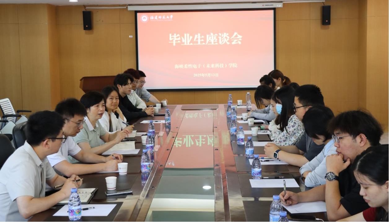 5月13日,海峡柔性电子(未来科技)学院在学院会议室召开2025届毕业生座谈会。学院党委书记章琳,副院长杨震、覃弦,辅导员及2025届毕业生代表参加会议。会议由章琳主持。
