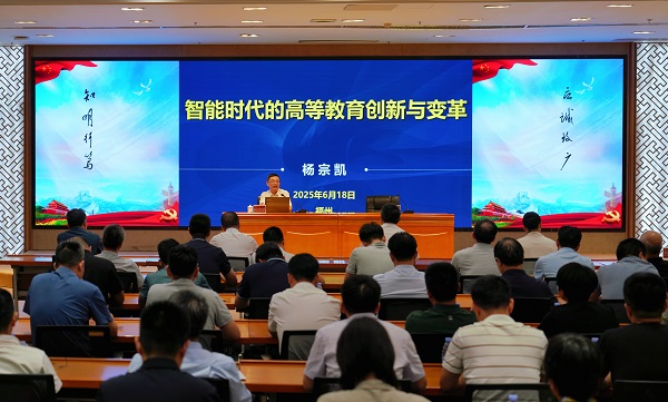 6月18日,武汉理工大学校长杨宗凯应邀来校作题为“智能时代的高等教育创新与变革”的专题报告。校领导,机关部处、教辅、公司、医院主要负责人,二级学院相关负责人,附属学校行政负责人参加学习。报告会由校长郑家建主持。
