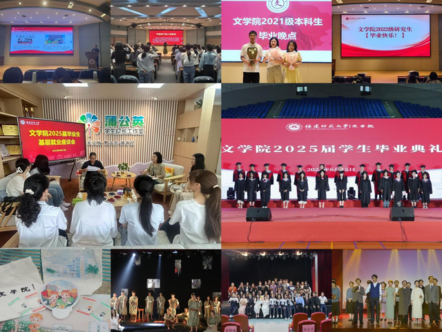 一堂专题党课,学院党委副书记刘锦华为毕业班全体党员讲授“深入贯彻中央八项规定精神学习教育”专题党课并重温入党誓词,强化毕业生理想信念教育和党员意识。一次基层就业座谈会,学院党委副书记、毕业班辅导员与基层就业毕业生深入交流,优化就业服务,在面对面交流中把好“出口关”。一次年级集中大会,毕业年级最后集中大会上,学院党委副书记、辅导员与毕业生共话教育与成长,并部署离校安排、聘任校友联络员。一场“毕业第一课”,学校首批文科资深教授孙绍振勉励学子“要做一个为祖国人民、为教育事业、为时代所需要的人”。一系列毕业话剧演出,文学院师生原创话剧《幌马车之歌》《奥菲齐纳·古加德》《臆想的梦》在科学会堂上演,展现学子创造力与专业素养。一套“毕业文创纪念品”,原创彩绘帆布包、学院特色标志鼠标垫和透卡、行李牌、反光板,承载学院祝福和深情。一场“毕业典礼”,文学院2025届学生毕业典礼在仓山校区体育馆举行,典礼上院长深情寄语、导师拨穗、师长亲切叮嘱、一首《长安山下的我们》串联起记忆碎片,传递出文学院的百年人文情怀。一支党员服务队伍,学院毕业生党员组建一支20人的志愿服务队,开展毕业档案整理、手续办理、就业信息等后续服务工作,以实际行动站好“最后一班岗”。