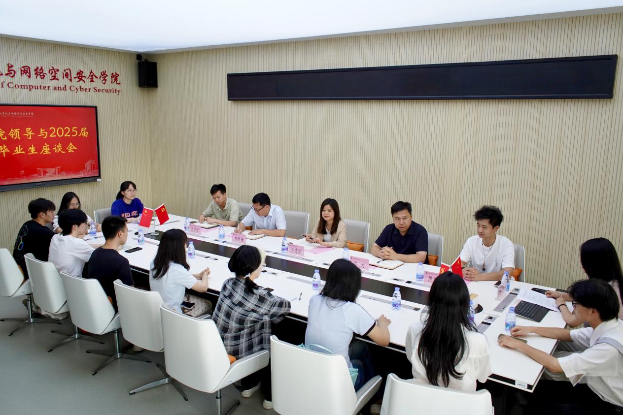 近日,计算机与网络空间安全学院召开2025届毕业生代表座谈会。学院党委书记许建萍、院长许力、党委副书记邓胜柱,毕业班辅导员以及2025届毕业生代表参加座谈。