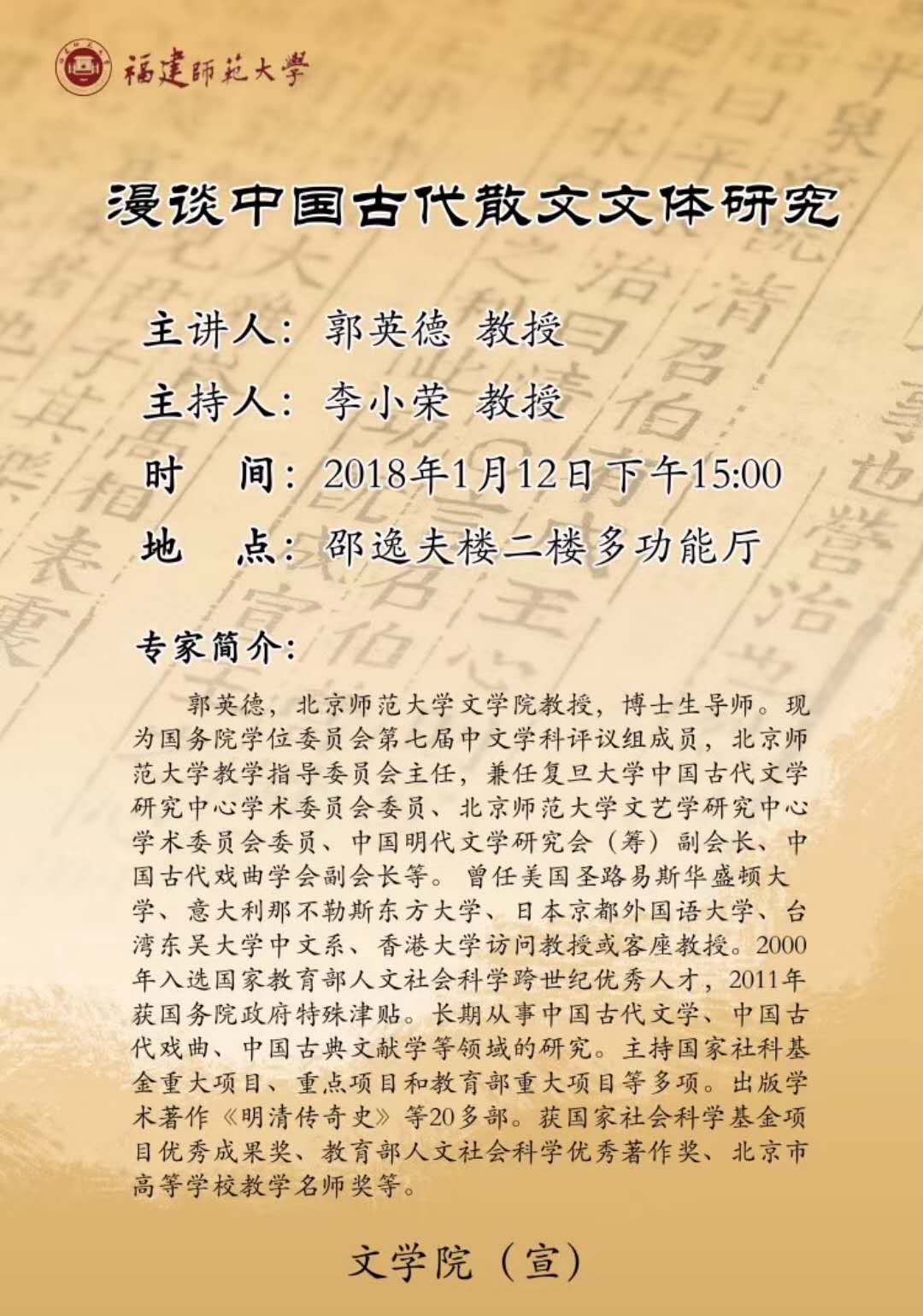 学术讲座【漫谈中国古代散文文体研究】